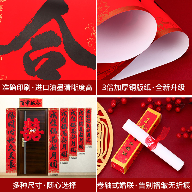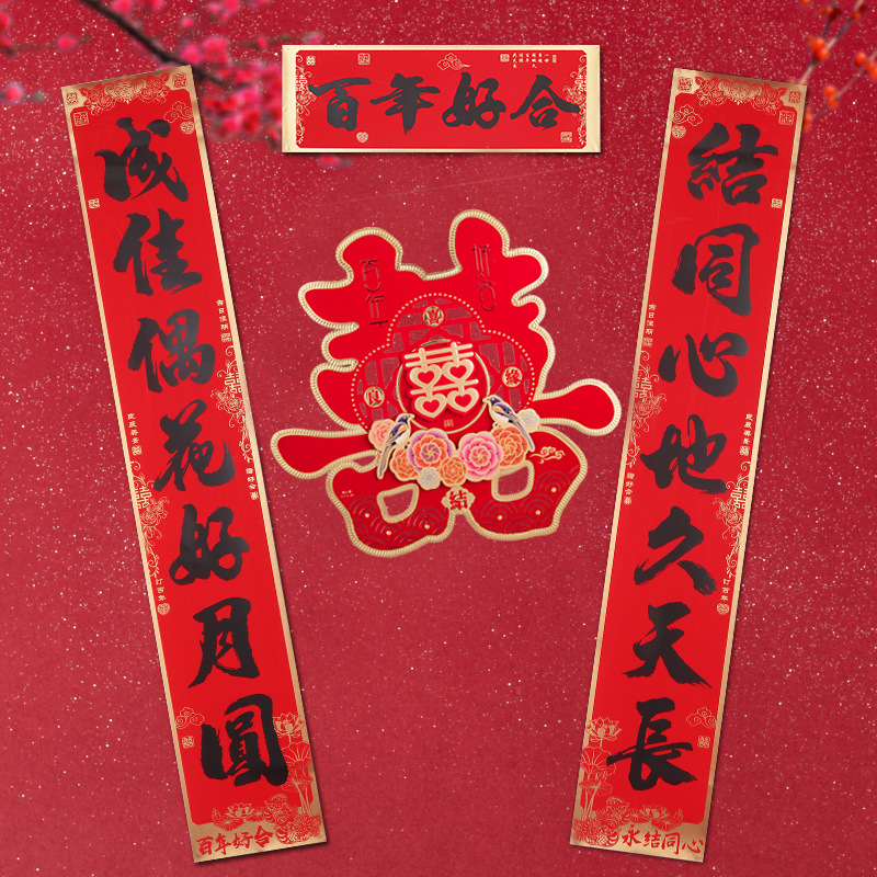 Wedding Couplets Wedding Celebration Newlyweds Woman marries Men's gate Wedding House Decoration Placement Happy wedding Supplies Grand full