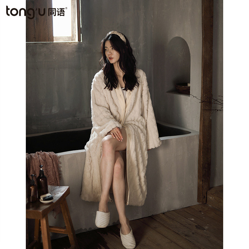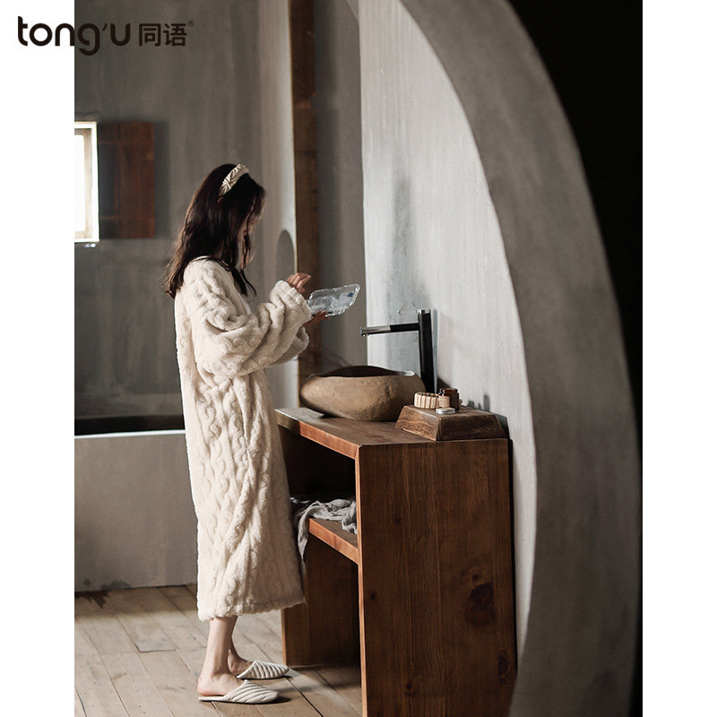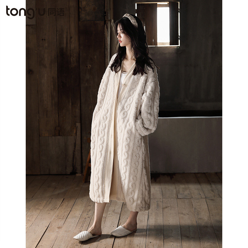 Hominin 2023 New jacquard sleeping robes Women's autumn Winter Coral Suede Thickening of the Warm Sensation Bathrobe Home of the Feminists-Taobao