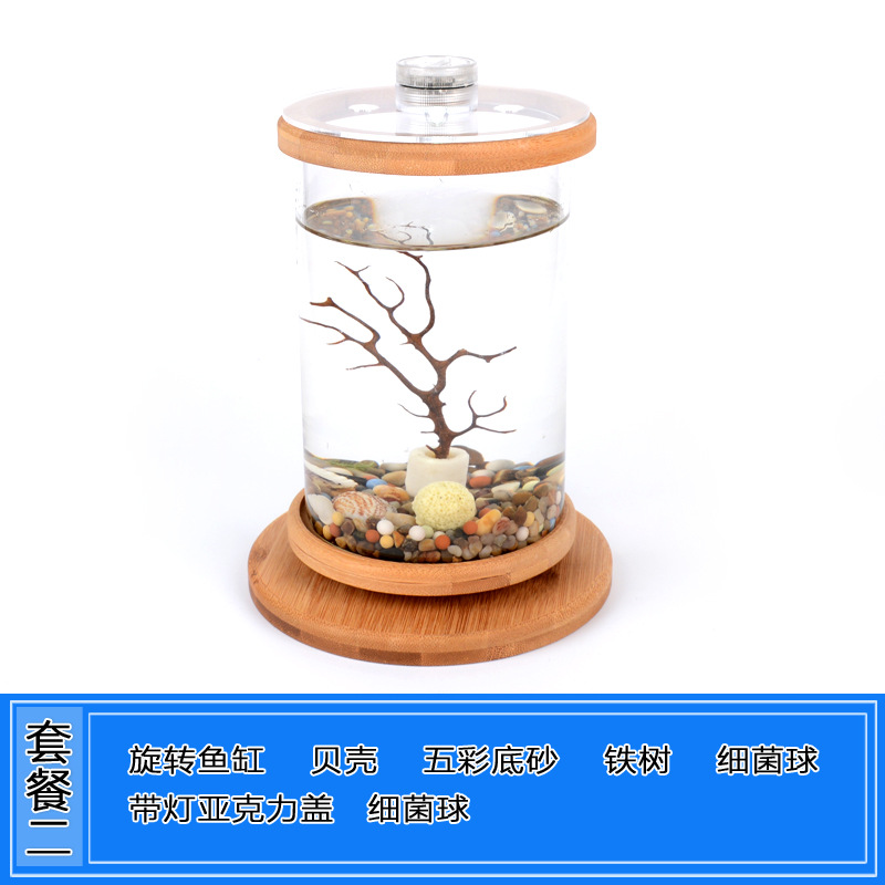 Tempered glass micro-scene cylinder rotates bedroom fish tank piercing fish tank mini-small desktop ecological bottle creative office