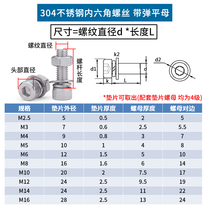 304 stainless steel inner hexagonal bolt spacer combined cylindrical head flat slingshot mother screw M3M4M5M6M8M10 -Taobao