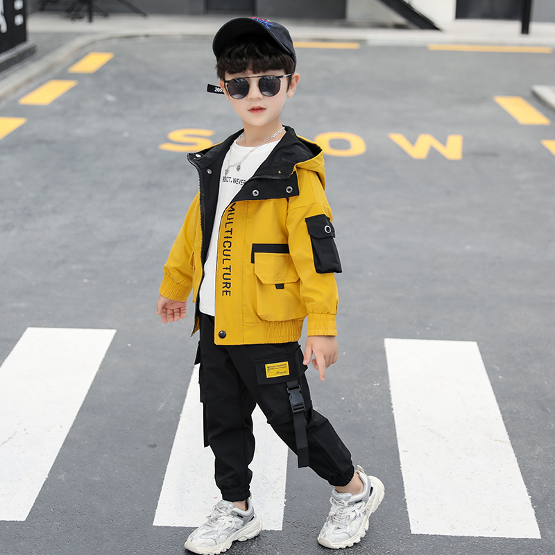 Boys' spring and autumn suits 2021 new little boy's fashionable clothes trendy children's autumn clothes Western style tooling two-piece suit