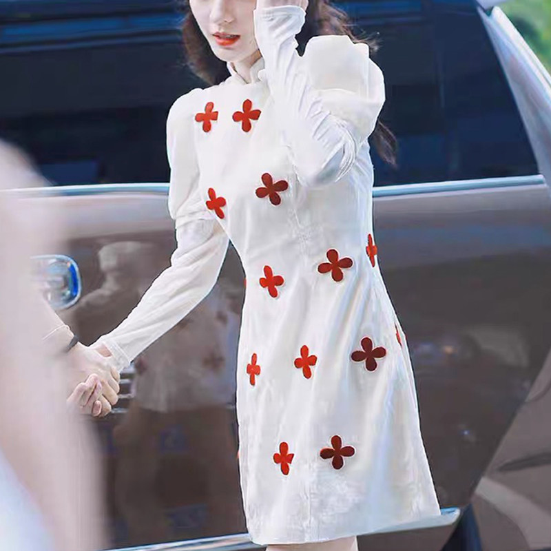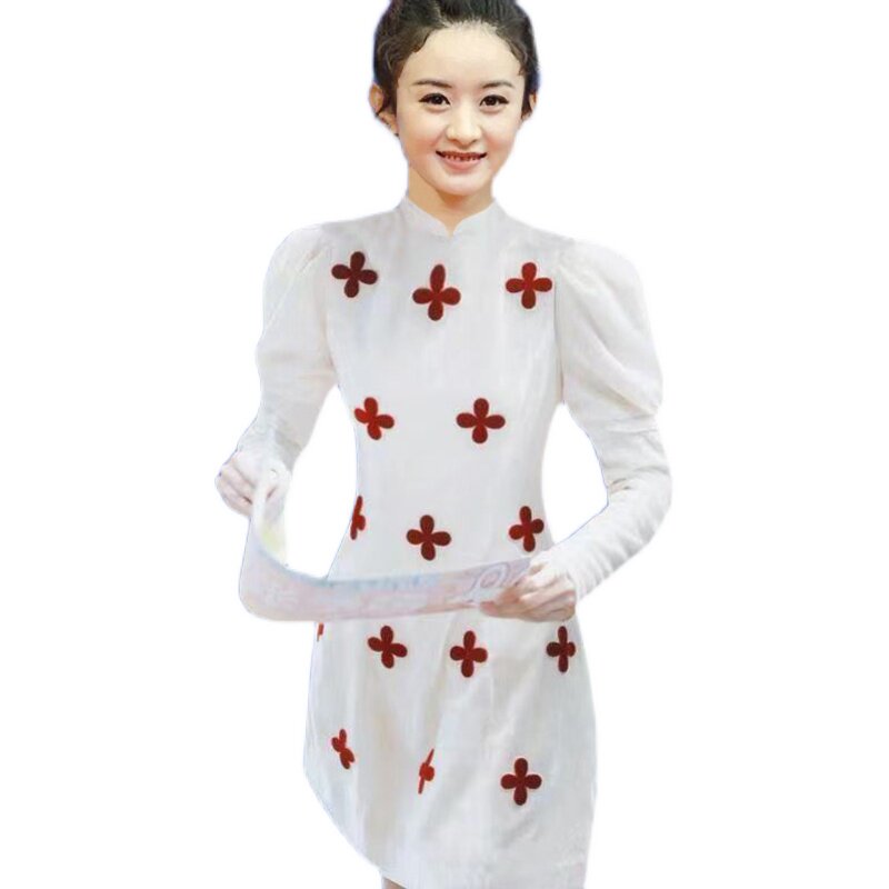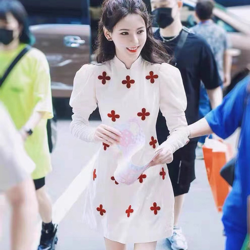 Star Zhang Yuxi's Tongan Qipao Young Girl's Daily Spring Little Submodified version of the foreign dress A word