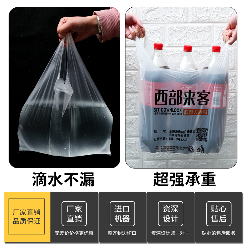 Plastic Bag Customised Print Logo Takeaway Packaging Bag Transparent Food Packaging Bag Supermarket Shopping Handbag Set Up