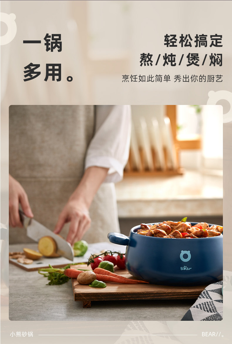Small Bear Casserole Domestic Gas Saucepan Saucepan Soup Stew Soup Ceramic Pan Gas Stove Ceramic Saucepan Rice Pan Soup Pan Sand Pan