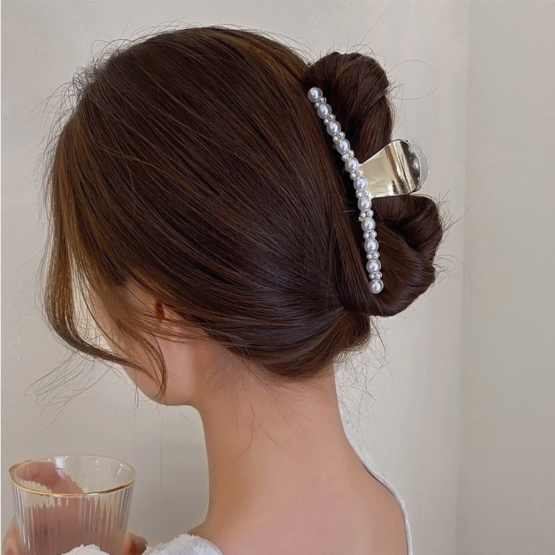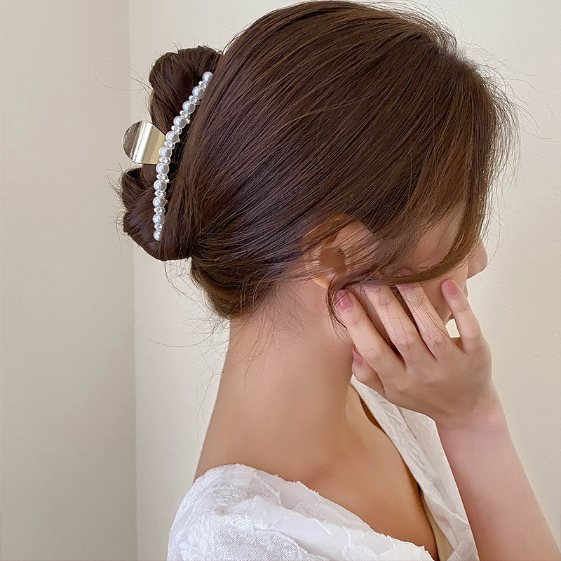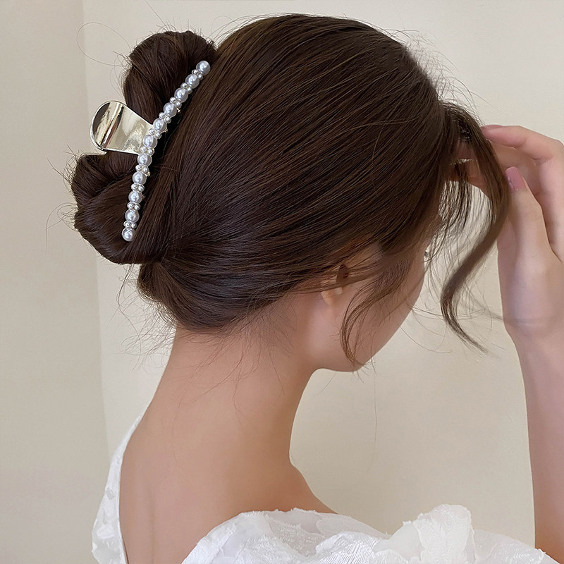 Net Red Pearl Hair Clip 2021 New Temperament Rear Brain Spoon Shark Clip Female Large Hair Grip Hair Grip Hair Clip Hair Clip