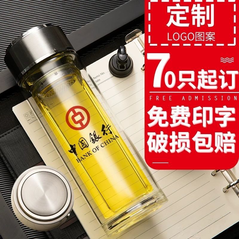 Custom double-layer glass engraving and printing cup logo company commemorative gift cup advertising custom tea cup water cup