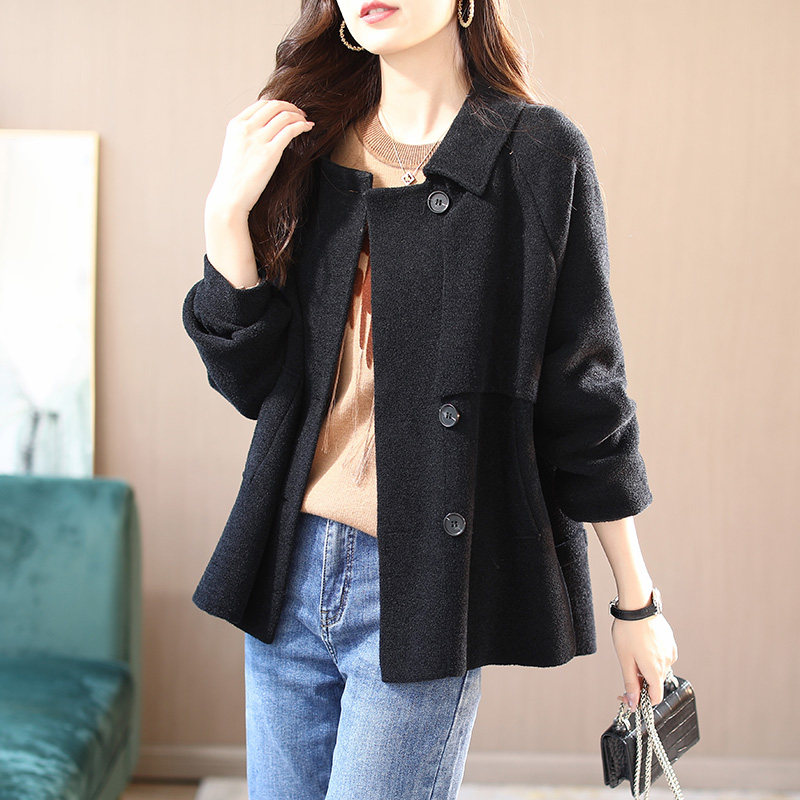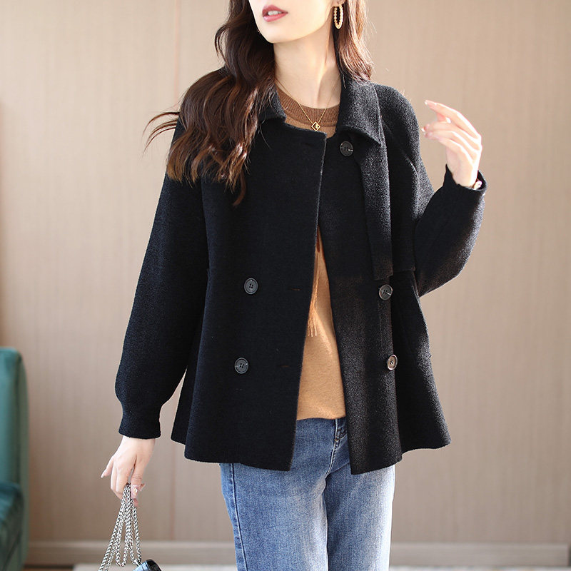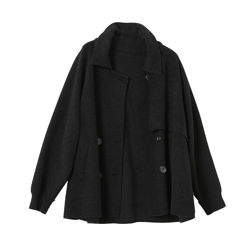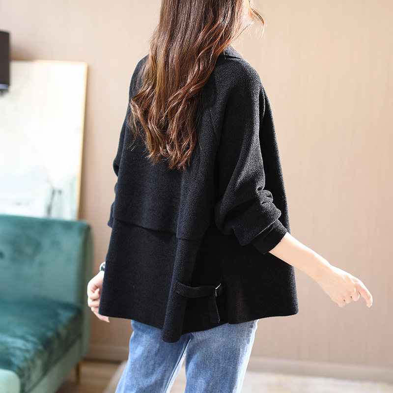 Boucheri black long-sleeved loose new women's jacket double-breasted all-match top 2022 pocket casual autumn clothes