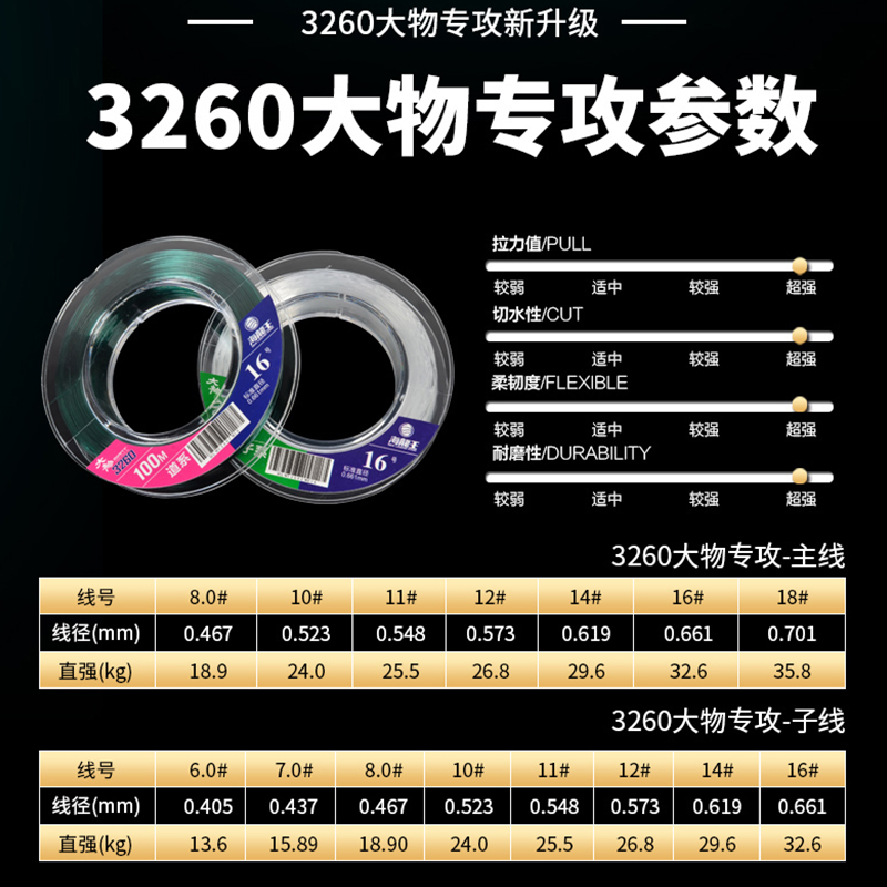 Sea Dragon King 3260 Big Object Line Herring Main Line Sturgeon Giant Fishing Line Taiwan Fishing Black Pit 100m Nylon Fishing Line