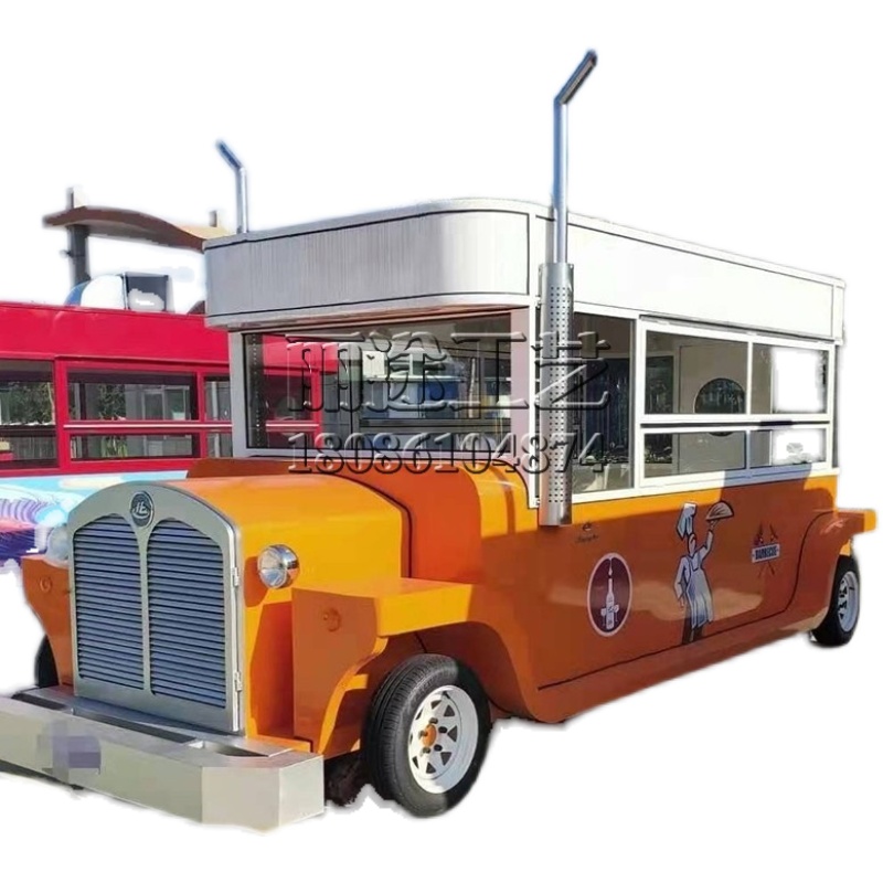 Retro Multifunction Dining Car Commercial Four Wheels Snack Car Mobile Pendulum Showy Milk Tea Ice Cream Coffee Vending Cart Customization