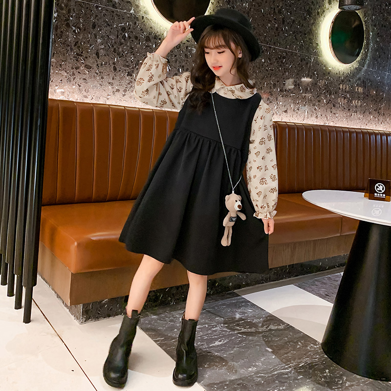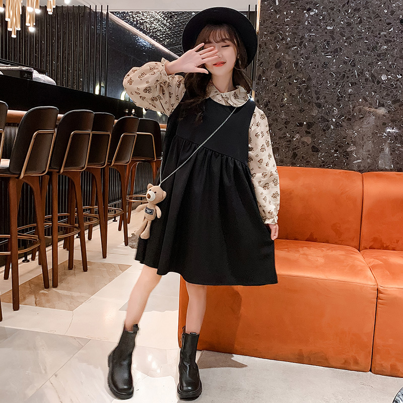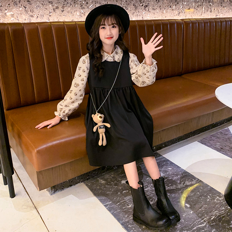 Girl Foreign Dress Spring Dress 2022 New CUHK Child Korean Version Shirt Spring A Little Girl Foreign Vest Princess Dress