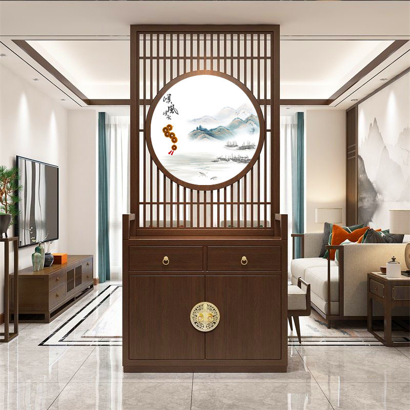 New Chinese Solid Wood Entrance Screen Partition Wall Living Room Home Custom Xuan Cabinet Log Cabinet Shoes Cabinet Shoes Cabinet cabinet