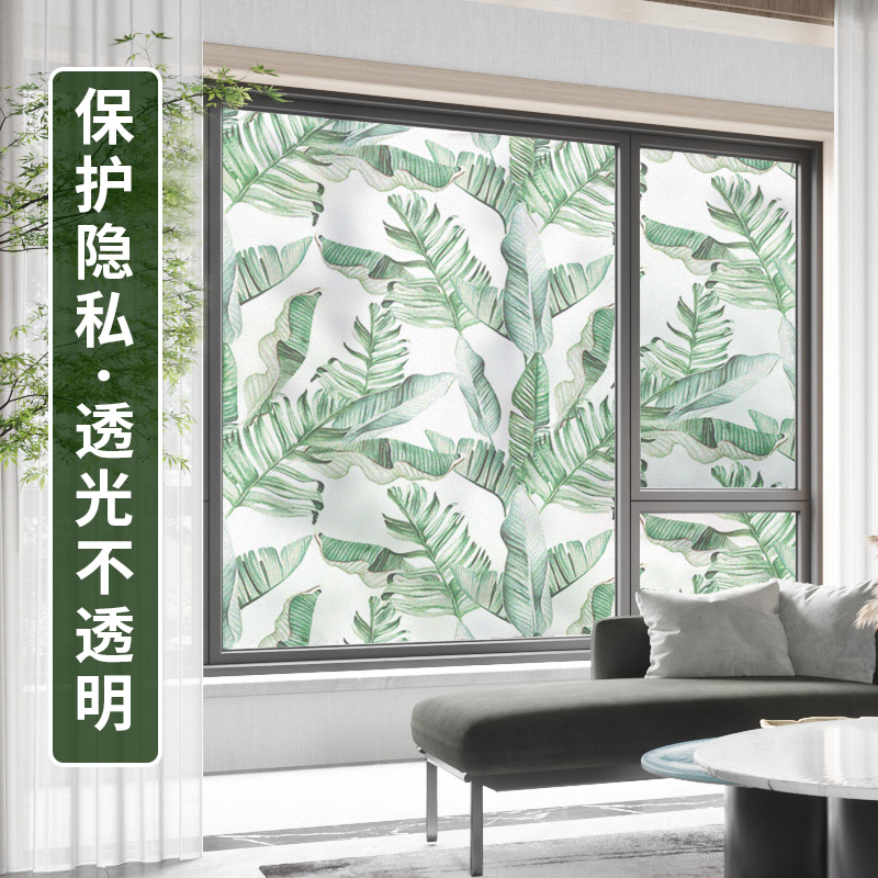 Fresh Green Leaf Window Sticker Anti-Peep Bathroom Toilet Glass Door Sticker Balcony Glass Paper Shading Window Sticker