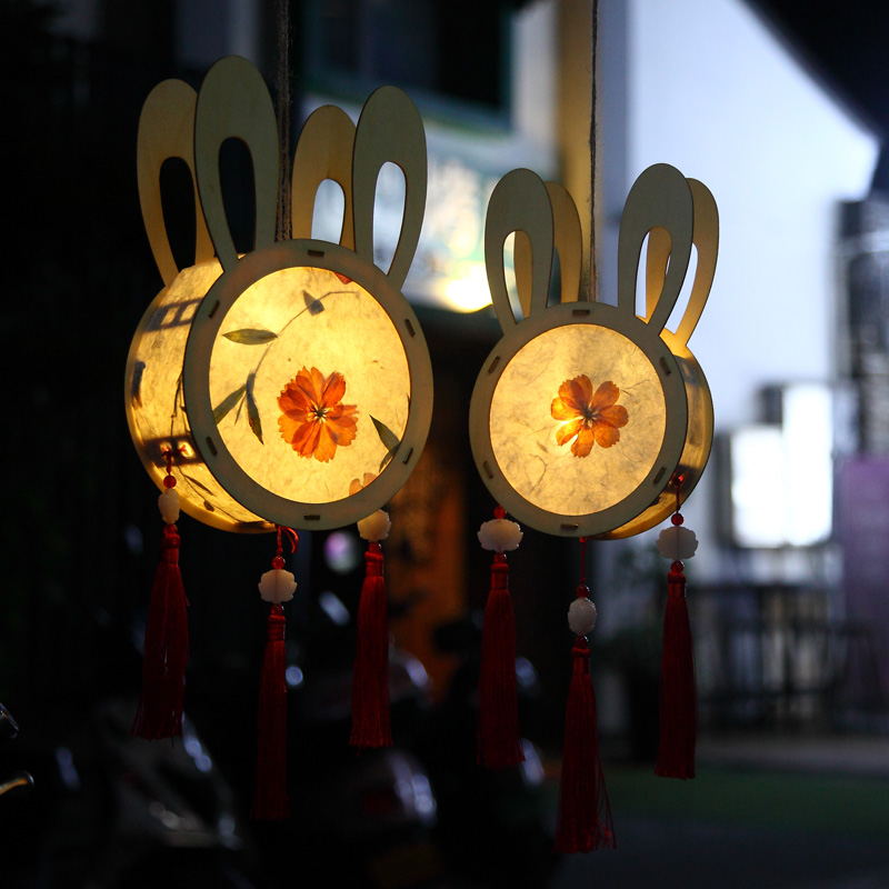New Year's children's diy handmade lantern Spring Festival rabbit glowing lantern ancient style Hanfu portable palace lantern Lantern Festival