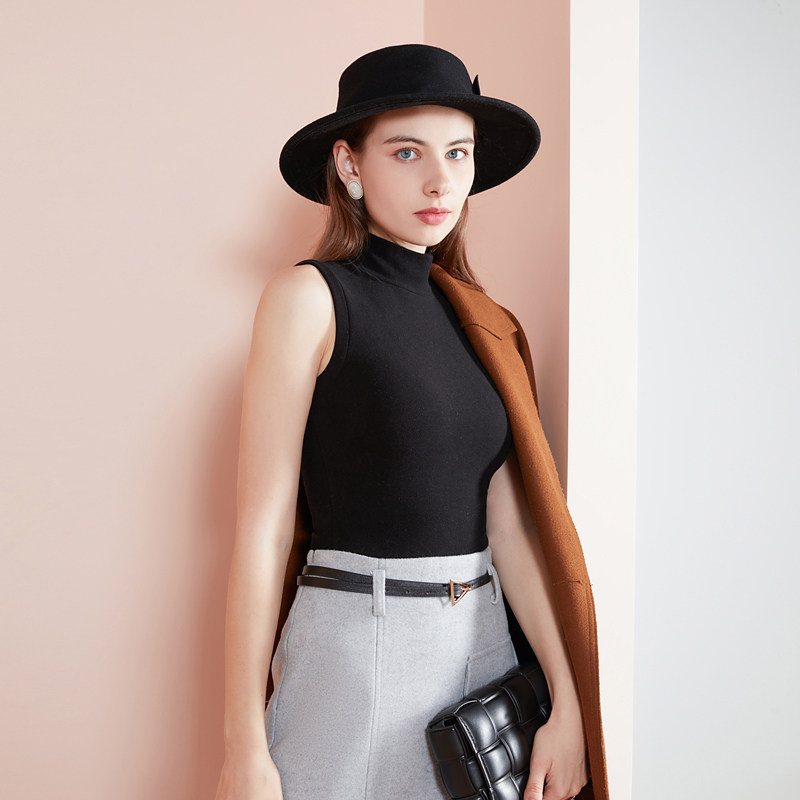 Warm Vest Woman Double Face Mill Hair Thickening Semi-High Neckline Duvet Undershirt Woman Autumn Winter Black Hitch Fever Autumn Clothes