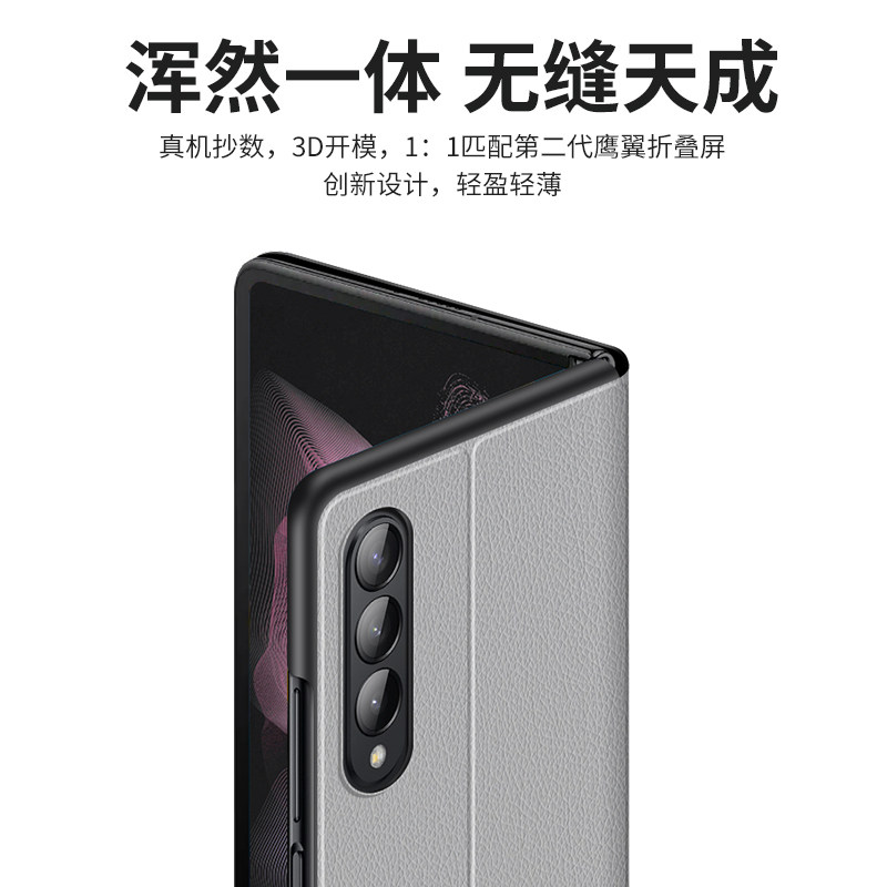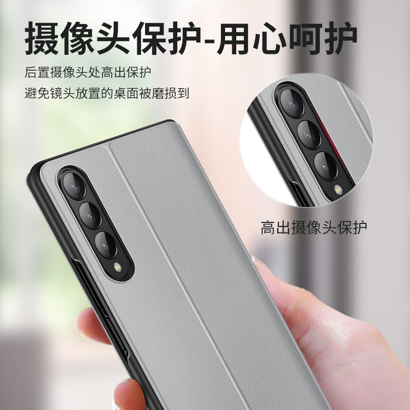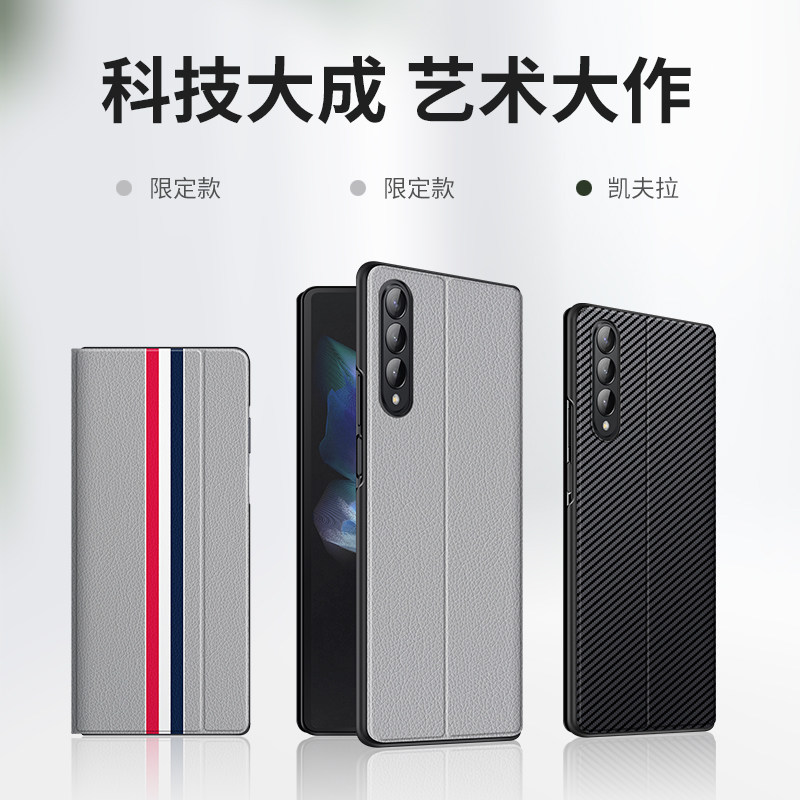 Samsung Fold3 Mobile Shell Protection Shell Fold3 Protection Screen Zfold3 Protective Set All-Pack Real Leather Texture W22 Ultra-thin SM-F9160 Anti-Fall Heart Contact the Limited Edition