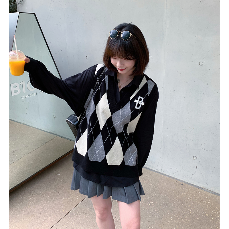 Masisi micro fat big size fat mm College wind fake two shirt Women autumn loose thin V collar design sense shirt