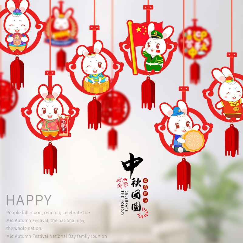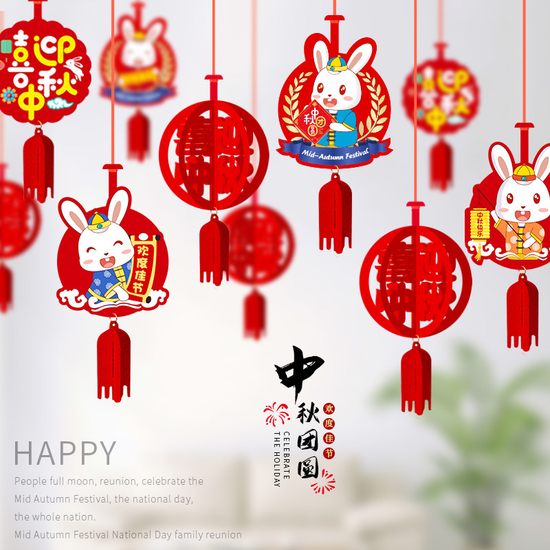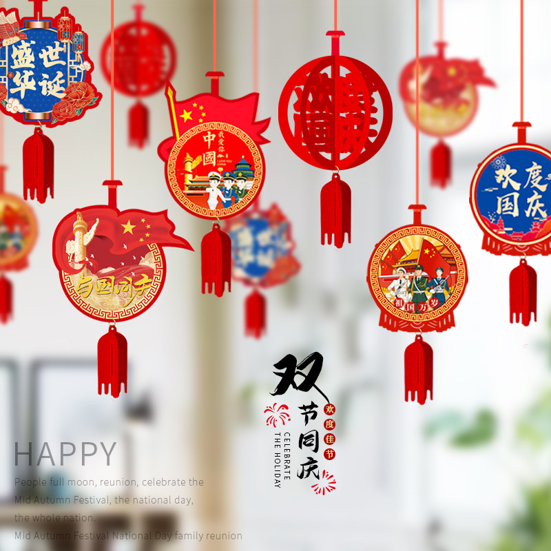 Central autumn National Day National Day decorations La banner mall store shop window hanging decoration scene arrangement hanging decoration supermarket shop pendants