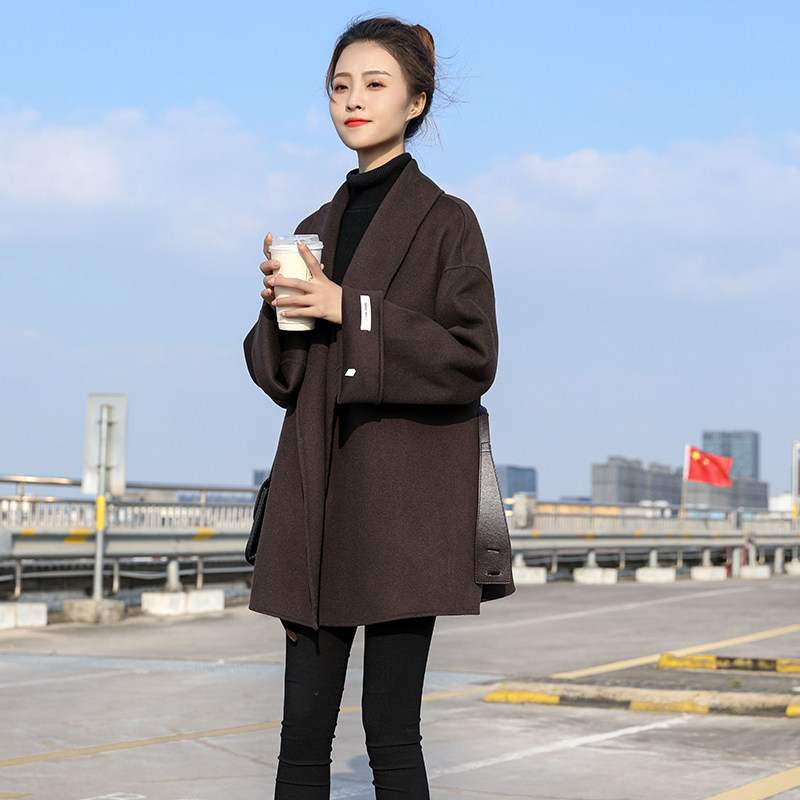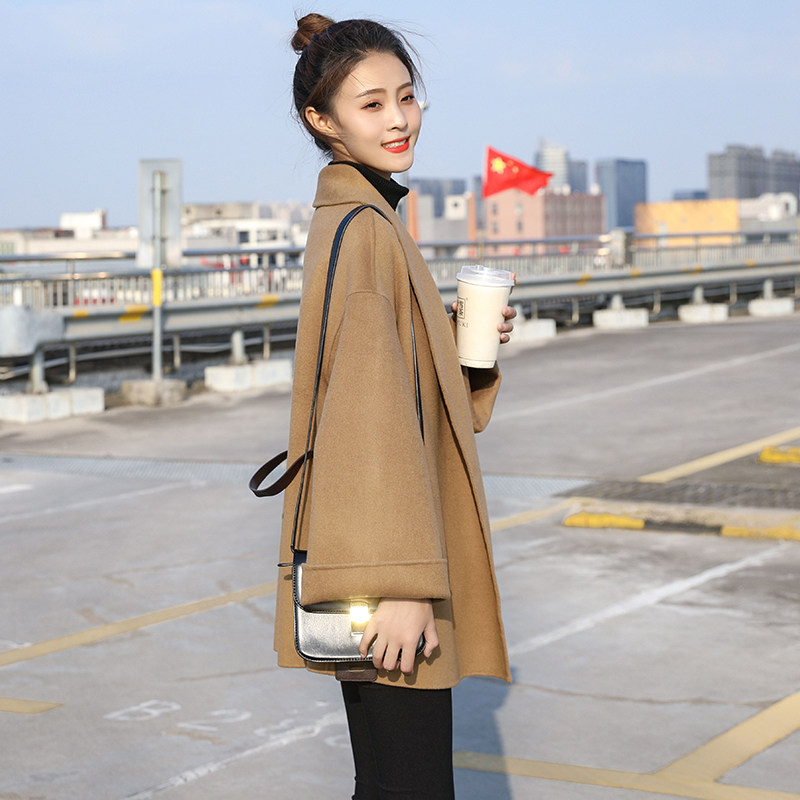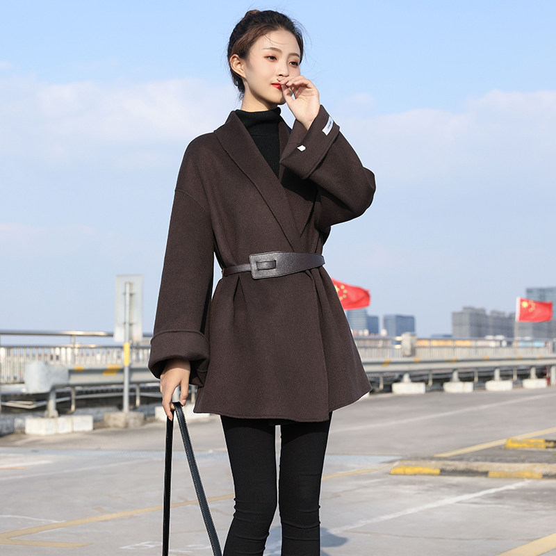 Small sub-double face cashmere big coat female short section 2021 Winter new Korean version loose with slim fur coat high end