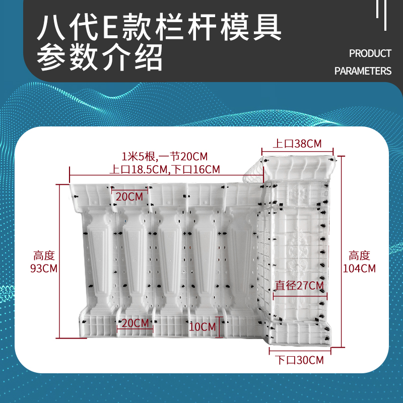 Roman column cast-in-place railing mold European villa balcony guardrail square cement pillar model mold thickened and durable