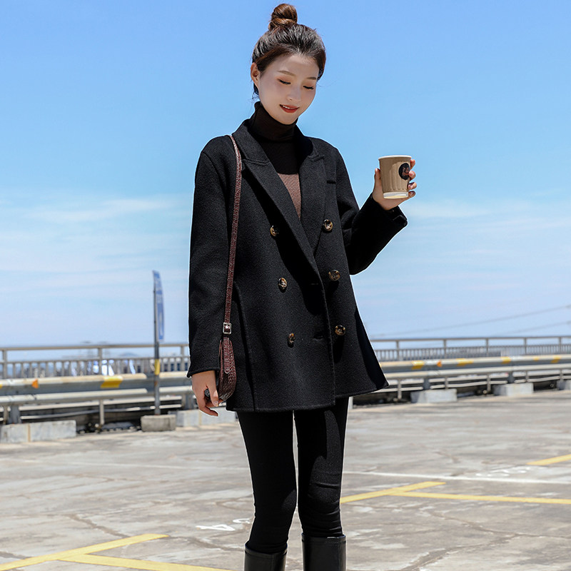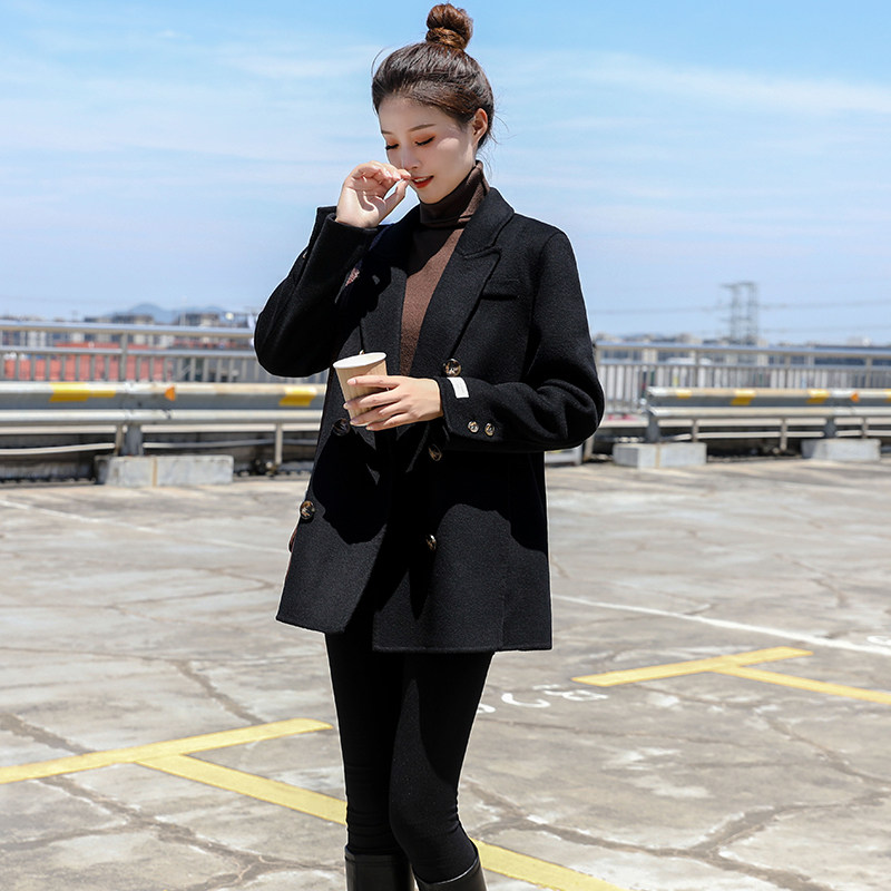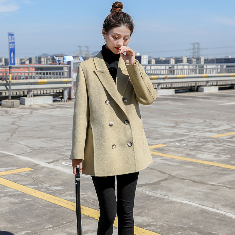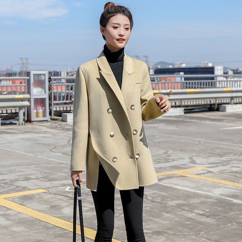 2021 New bifacial cashmere big coat female short high-end female small sub winter suit open fork casual jacket