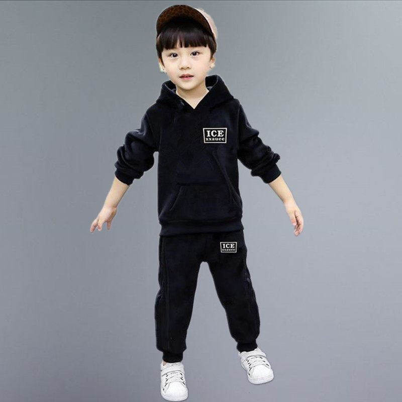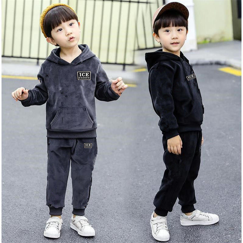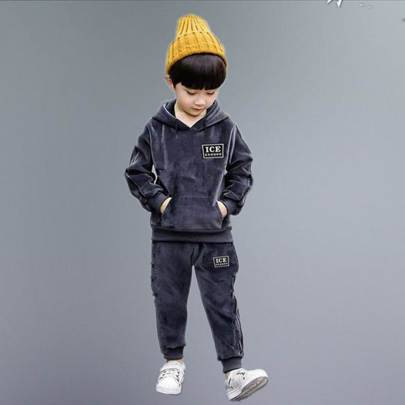 South Korean boy gold velvet plus suede thickened casual sports thick cotton jacket 2021 long sleeve child winter style suit tide