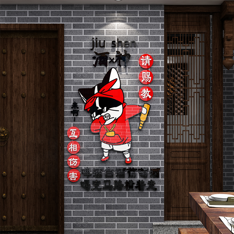 Net red photo area creative barbecue meat hot pot restaurant shop bar scene layout decorations wall stickers