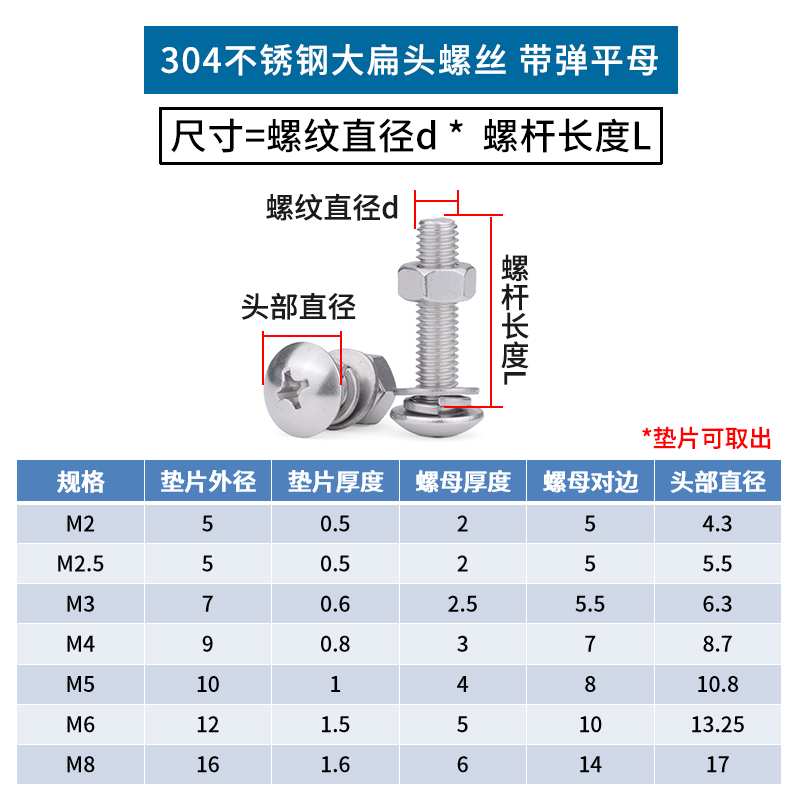 304 stainless steel large flat head screw nut set cross big head screw nut complete m3m4m5m6m8