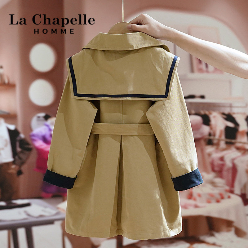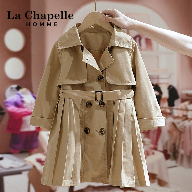 La Chapelle children's clothing girls autumn mid-length windbreaker 2022 new fashion children's casual foreign style coat tide