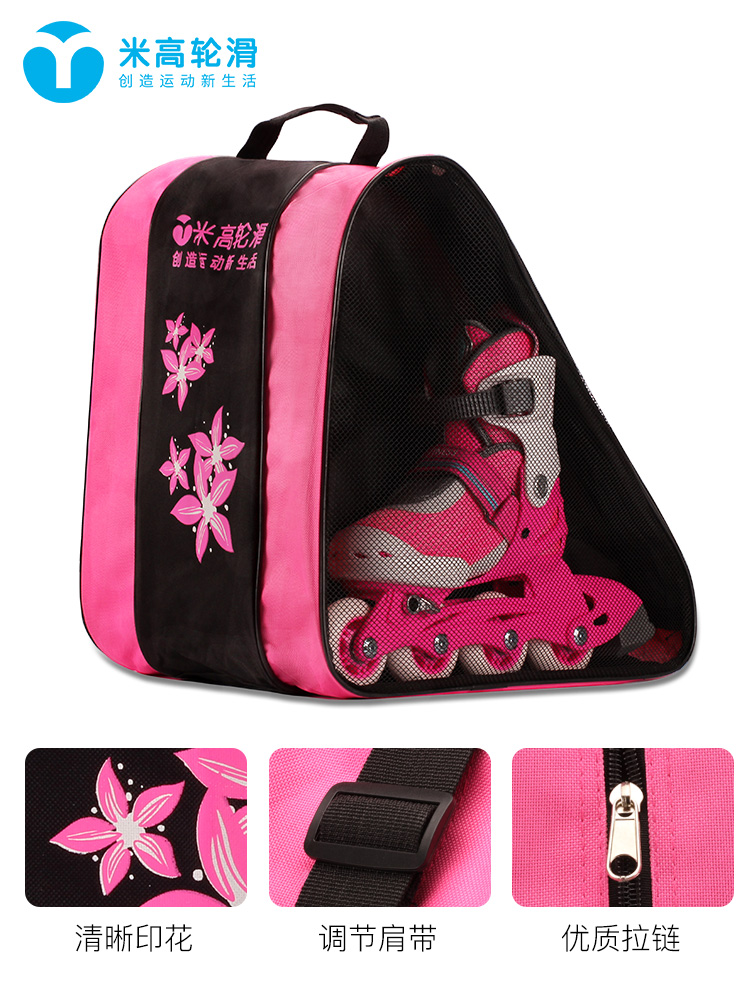 Rice high roller skating shoes bag children skating equipment storage bag female male adult roller skating bag three layer cross bag