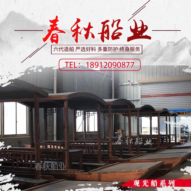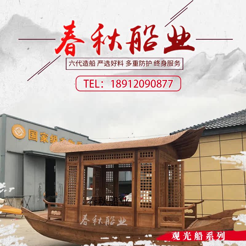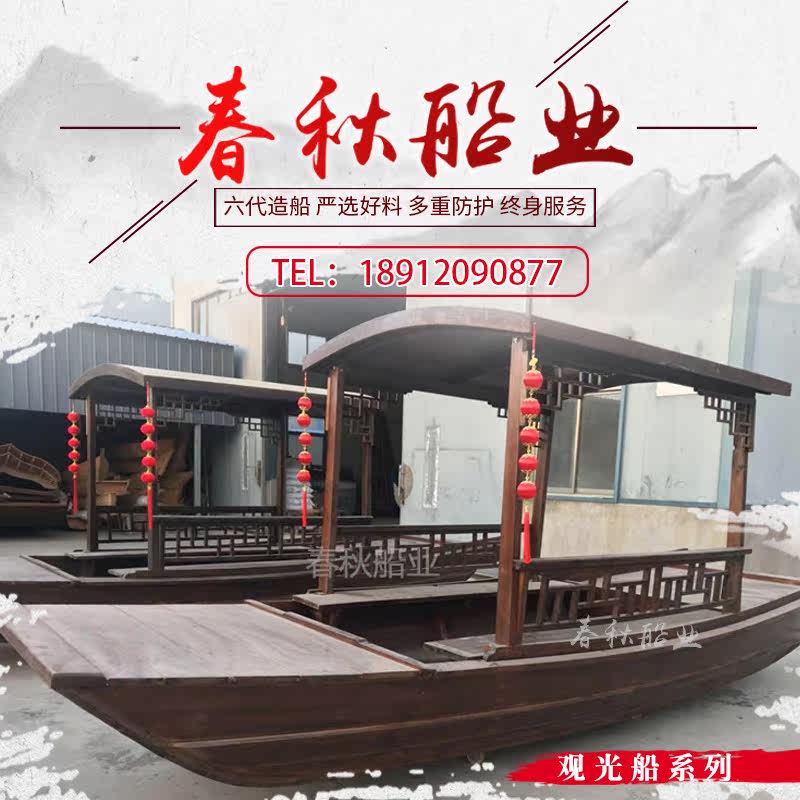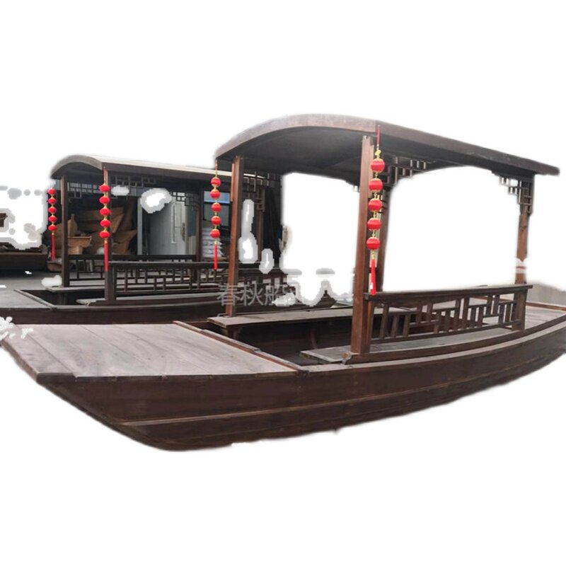 Wooden boat antique solid wood single Peng green tea guimanlong dining Indoor theme hand-drawn Chinese electric double canopy sling boat