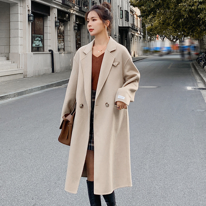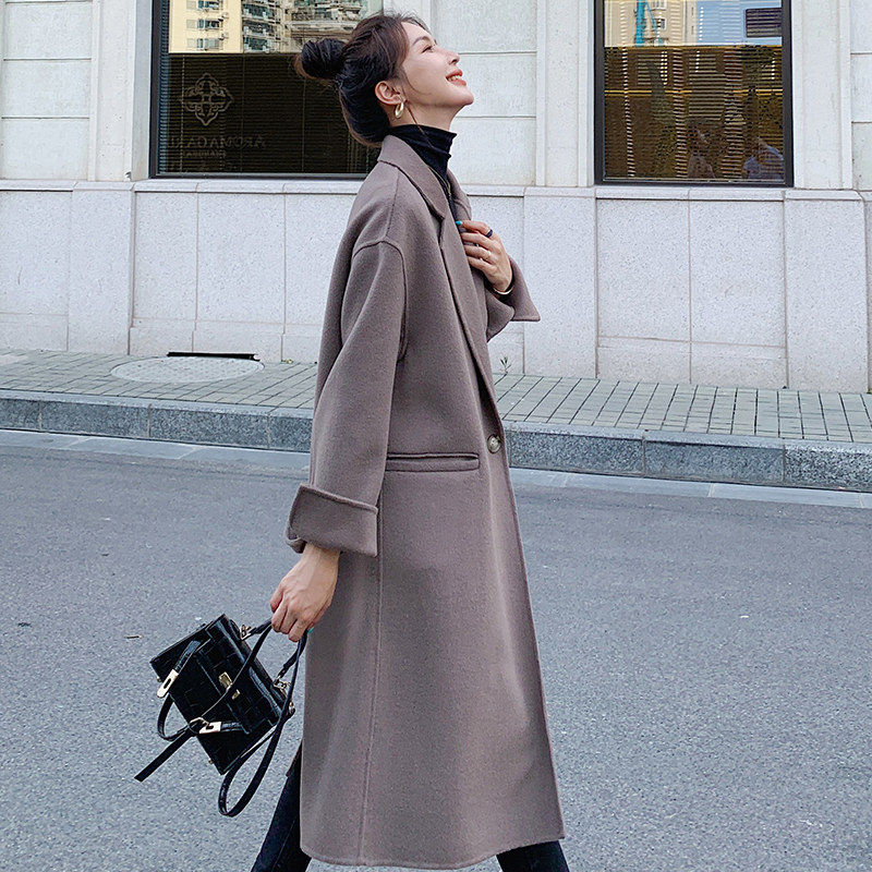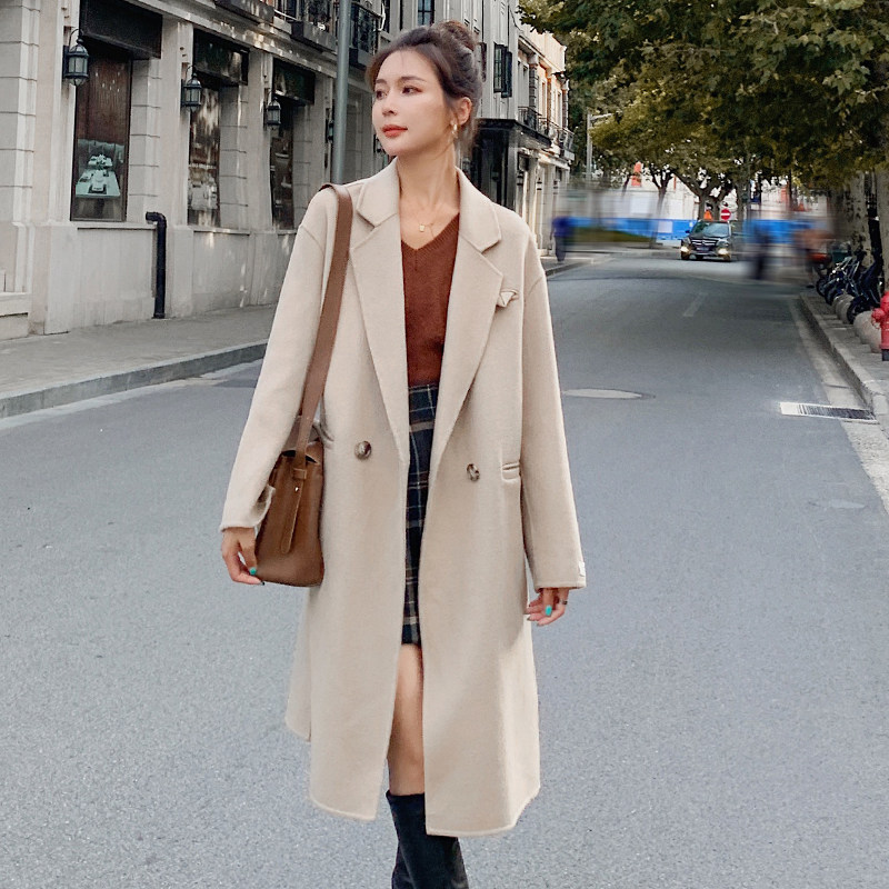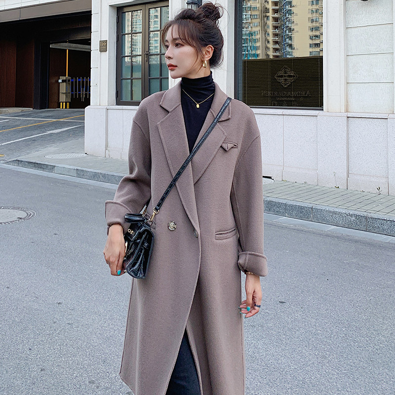 Double face cashmere Grand coat Women's medium long version 2021 Autumn winter new Korean version loose with lean upscale double face jacket