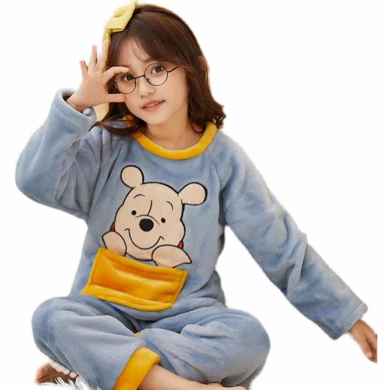 2022 New Small Bear Girl Sleepwear Coral Suede Child Baby Girl Autumn Winter Flannel Warm Suit-Taobao