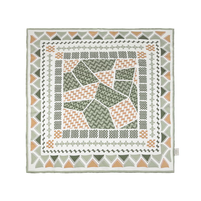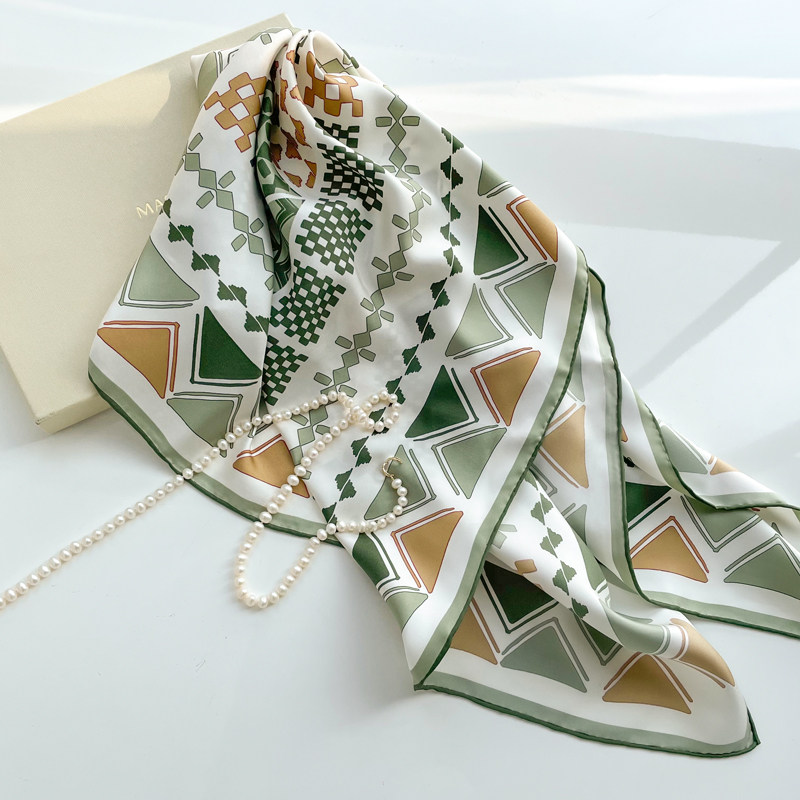 Ma's Jiamin Autumn Winter New Olive Green Geometric Printed Big Square Towel Scarves 21mm Genuine Silk Scarves