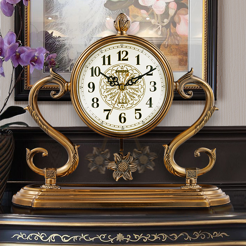 Desk clock living room home Chinese desktop clock seat clock table feng shui decoration bedroom mute retro big sitting clock