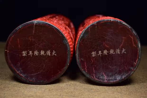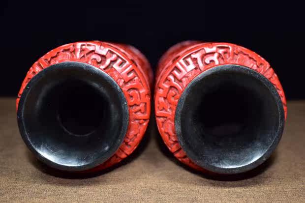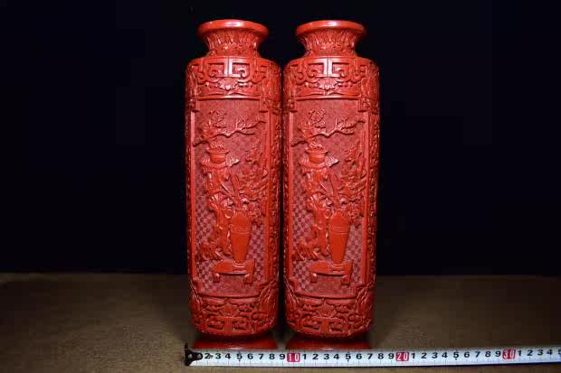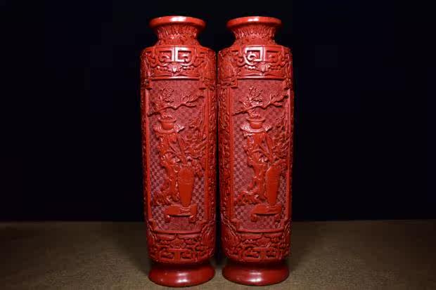 Folk Collection Old Beijing lacquerware Old and red lacquerware vase A pair of old lacquerware vases