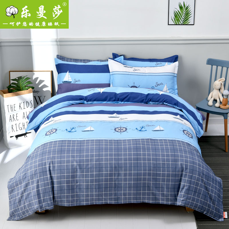 Pure cotton four-piece set 100% cotton bedding single student quilt cover quilt cover bed sheet three-piece set 4 pieces