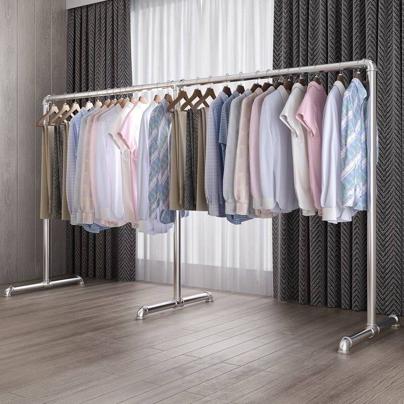 Double-layer drying rack floor-to-ceiling single pole up and down double-layer pole thickened household mobile indoor balcony galvanized tube drying rack