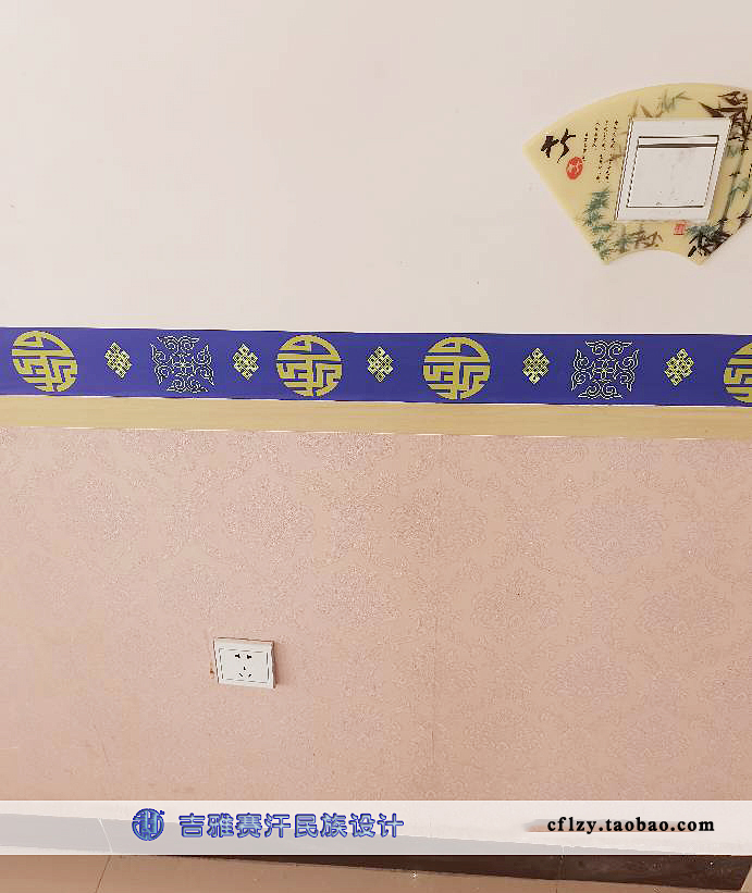 12X120cm Mongolian style colored flower pattern with waist line wall stickup Mongolian flower pattern decoration stickleback adhesive sticker