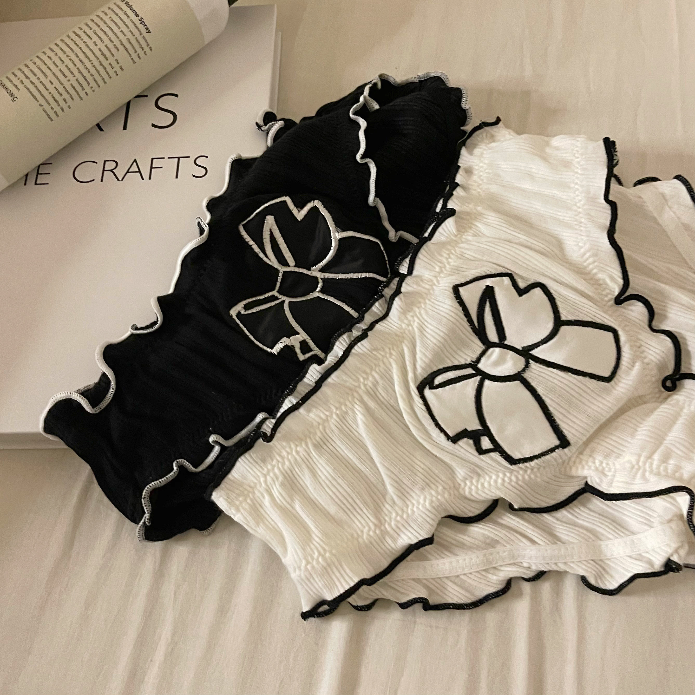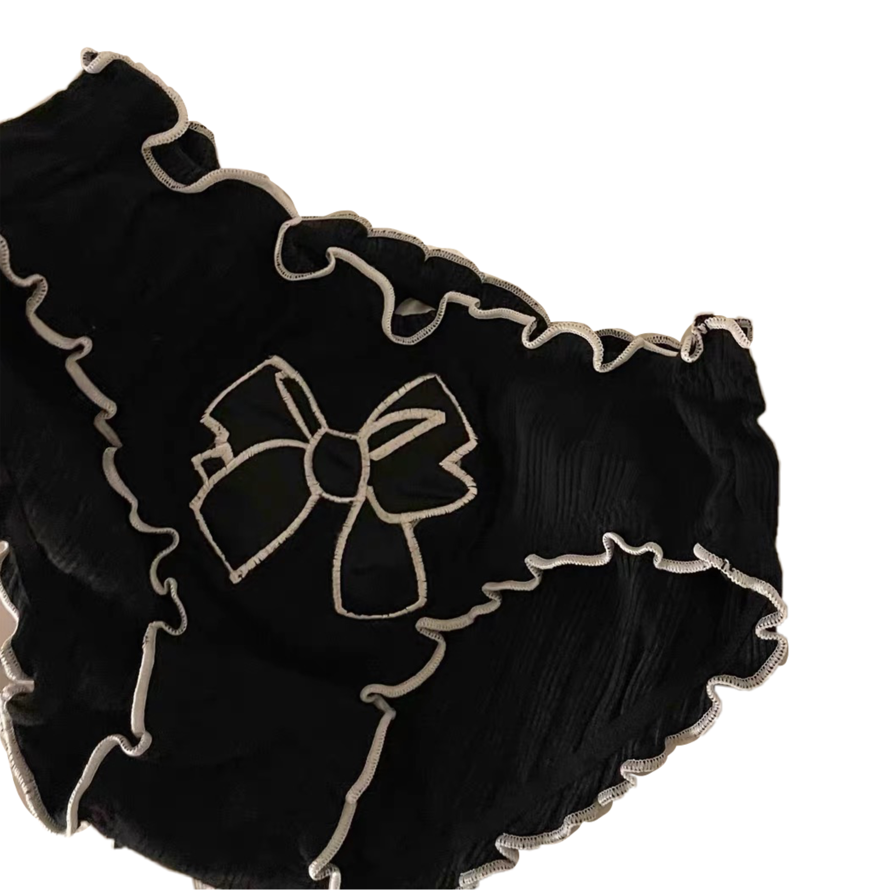 Cute Japanese bow girl gentle fungus edge comfortable and soft mid-waist cotton panties