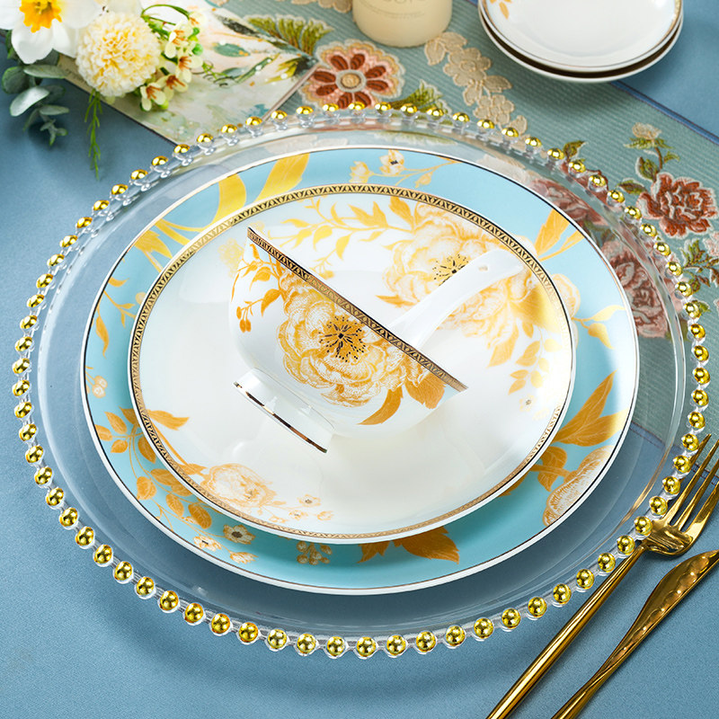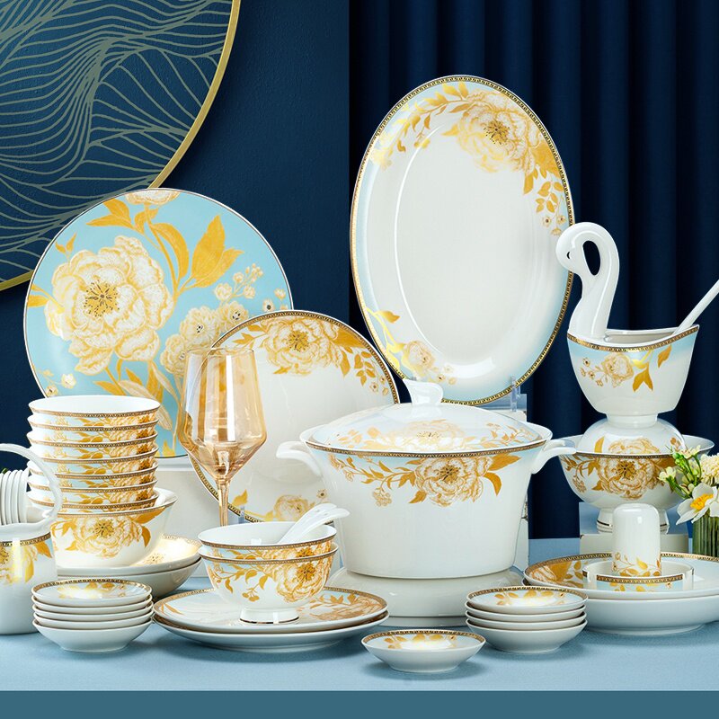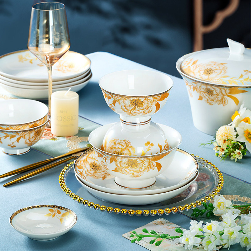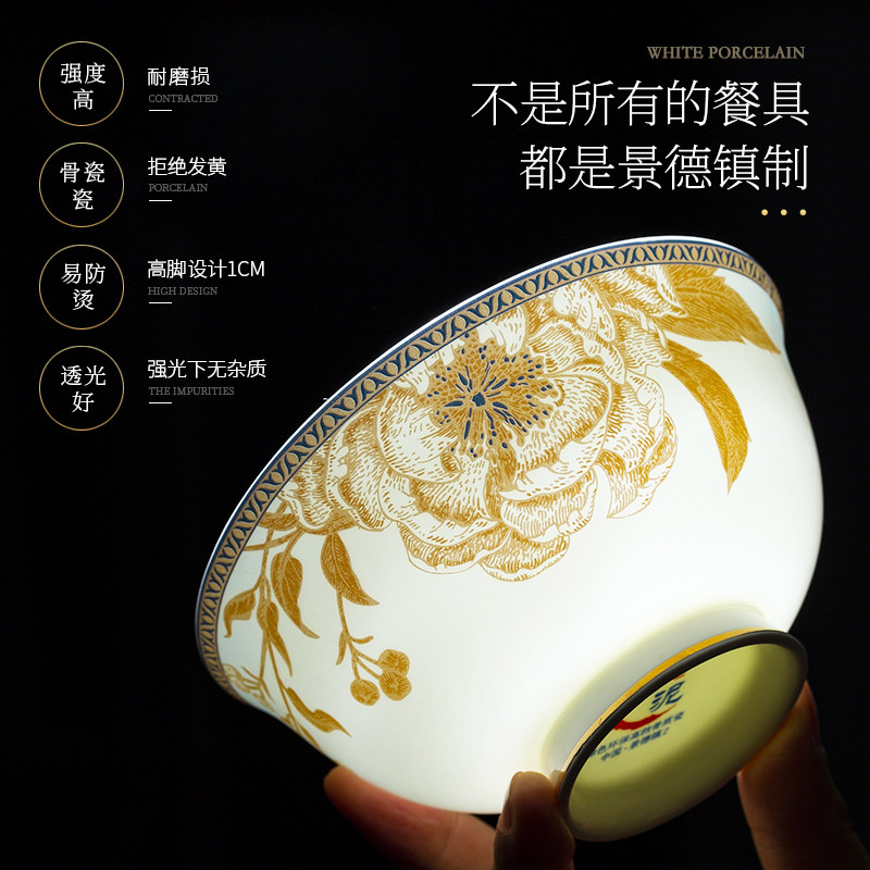 Dish suit Home Jingdezhen Ceramic Bone China Porcelain Tableware Suit Phnom Penh Bowl New Chinese Bowl Chopsticks Creative Gifts