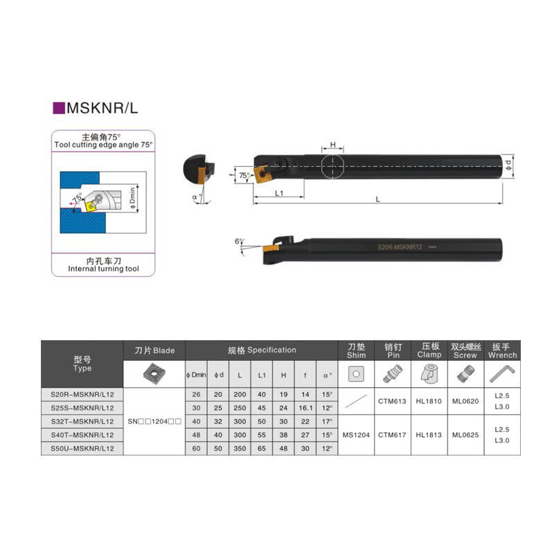 CNC car knife 75 degree inner hole knife S20R25S32T-MSKNR12 square 8 knife tip lathe boring knife