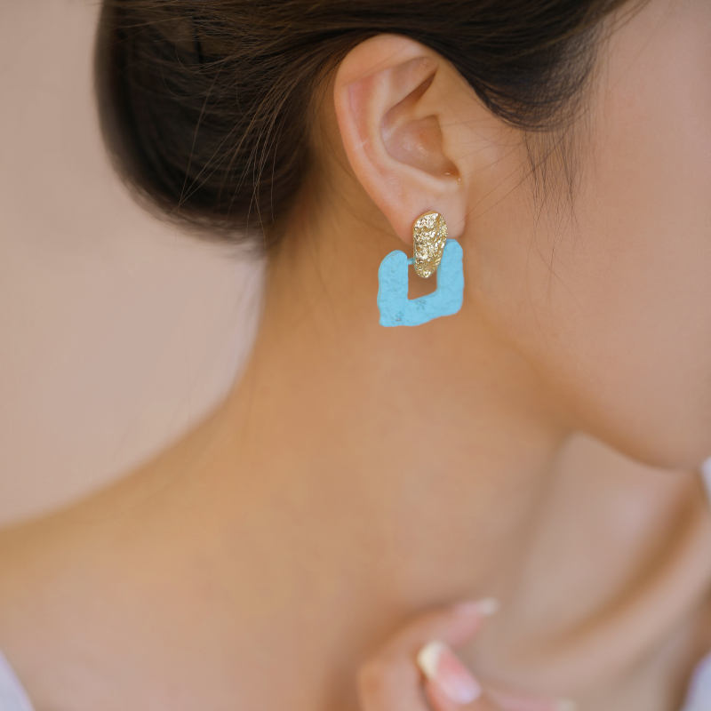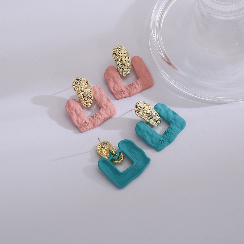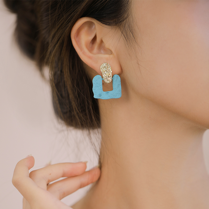 Collision Color Square Earrings Woman 2022 net Red burst Delicate 100 Hitch Retro Auroris Geometric Peacock Blue Temperamental Earnestle