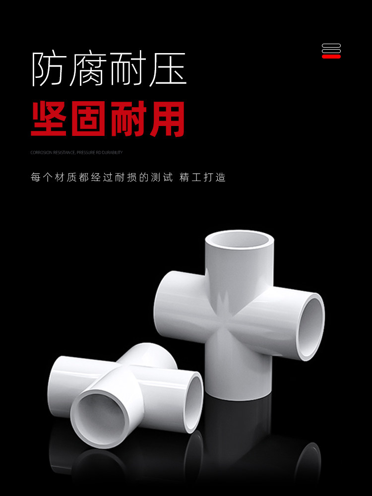 UPVC four-way cross plane connector accessories right-angle water pipe 4 minutes 6 minutes 1 inch 20 25mm32 50 63 110