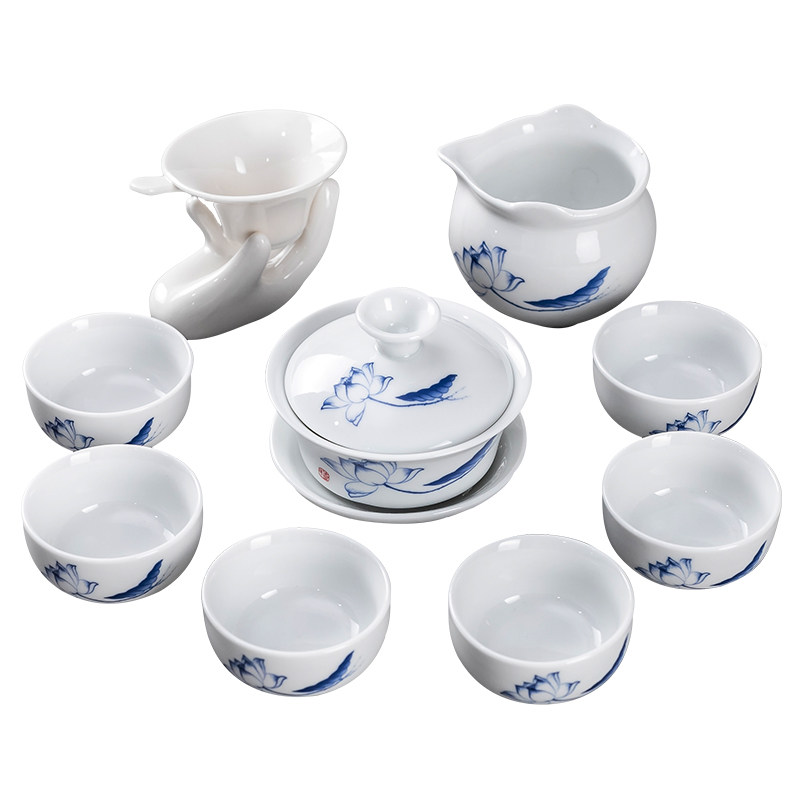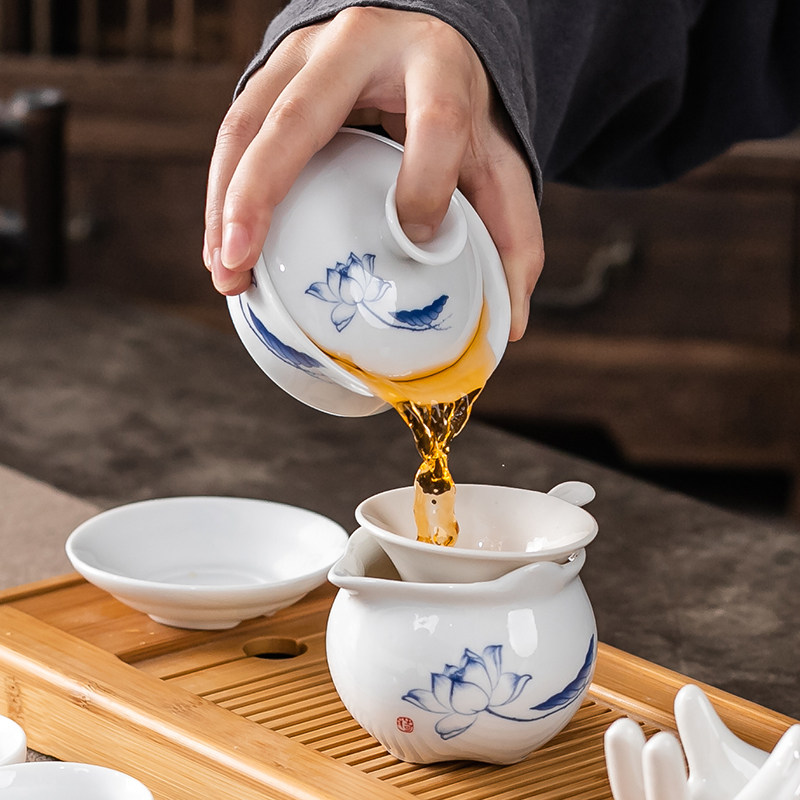 Lanyang Kung Fu Tea Set Suit Ceramic Teapot Cover Bowl Tea Bowl Qinghua White Porcelain Simple Household Small Suit Special Price-Taobao