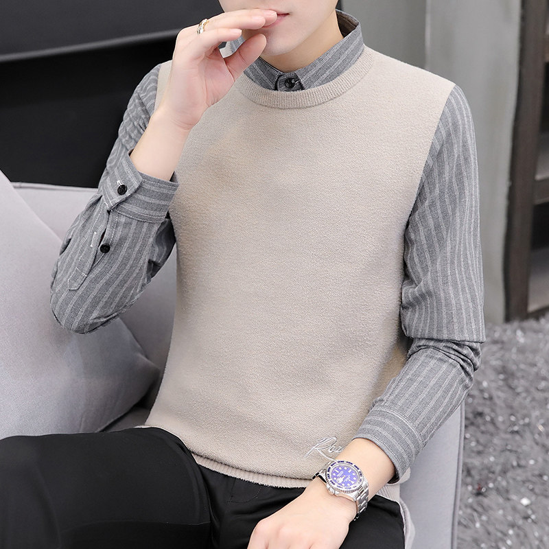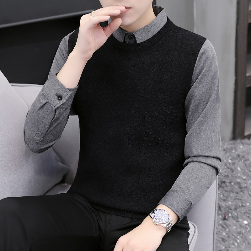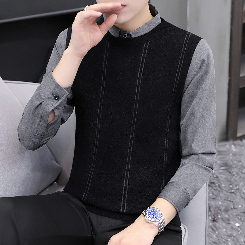 Fake collar sweater men fake two pieces shirt collar knitted base shirt Korean slim spring thin business leisure tide