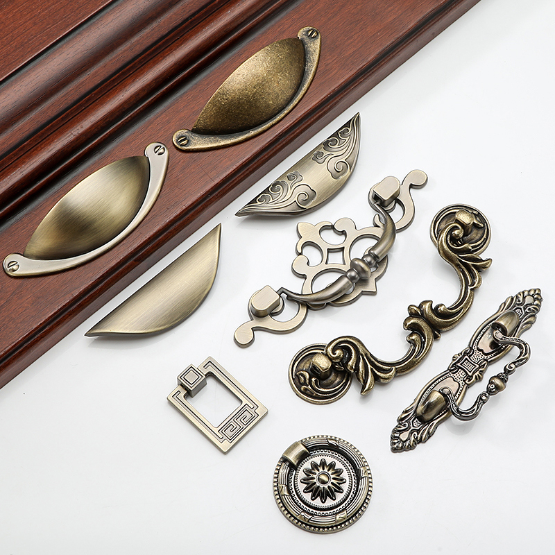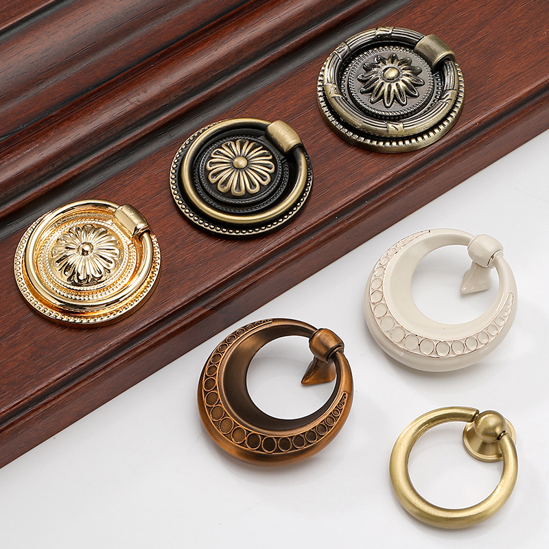 Eagle shield New Chinese single-hole handle imitation ancient bronze round integral cabinet pull-pull drawer wardrobe door handle retro light and small