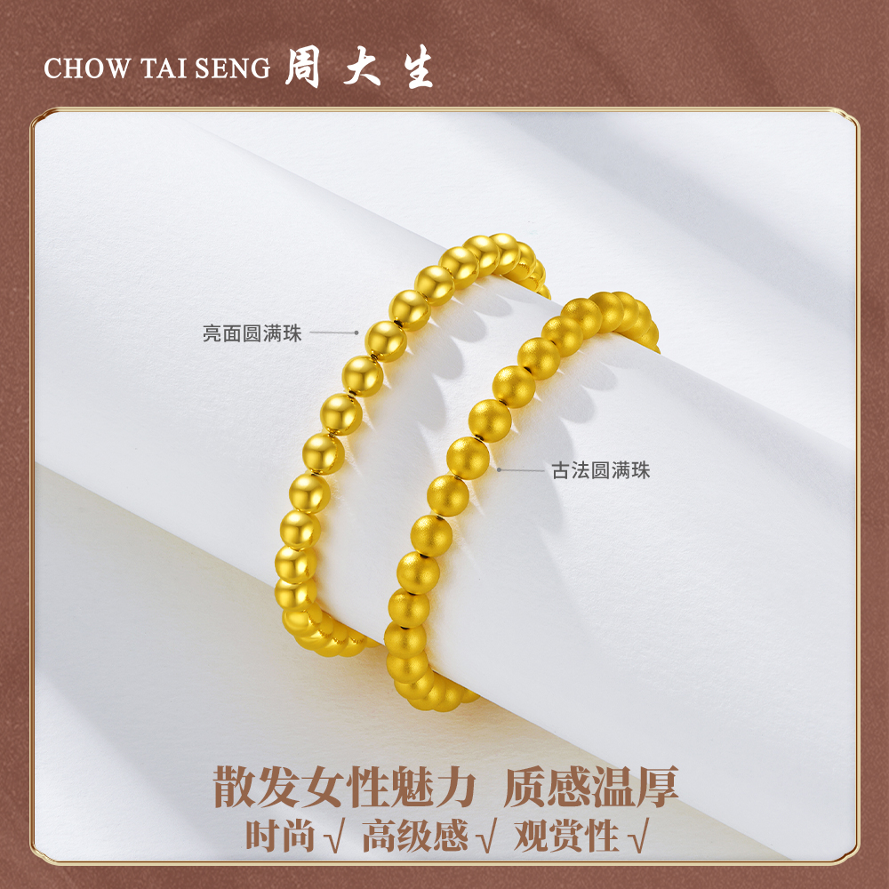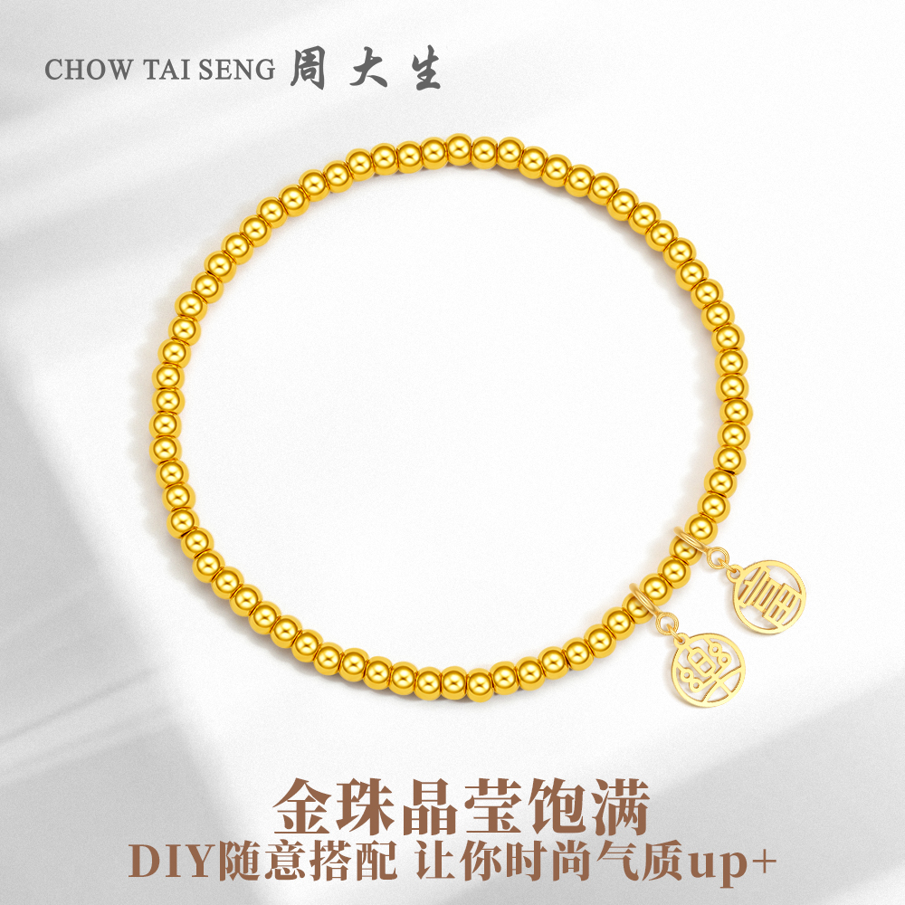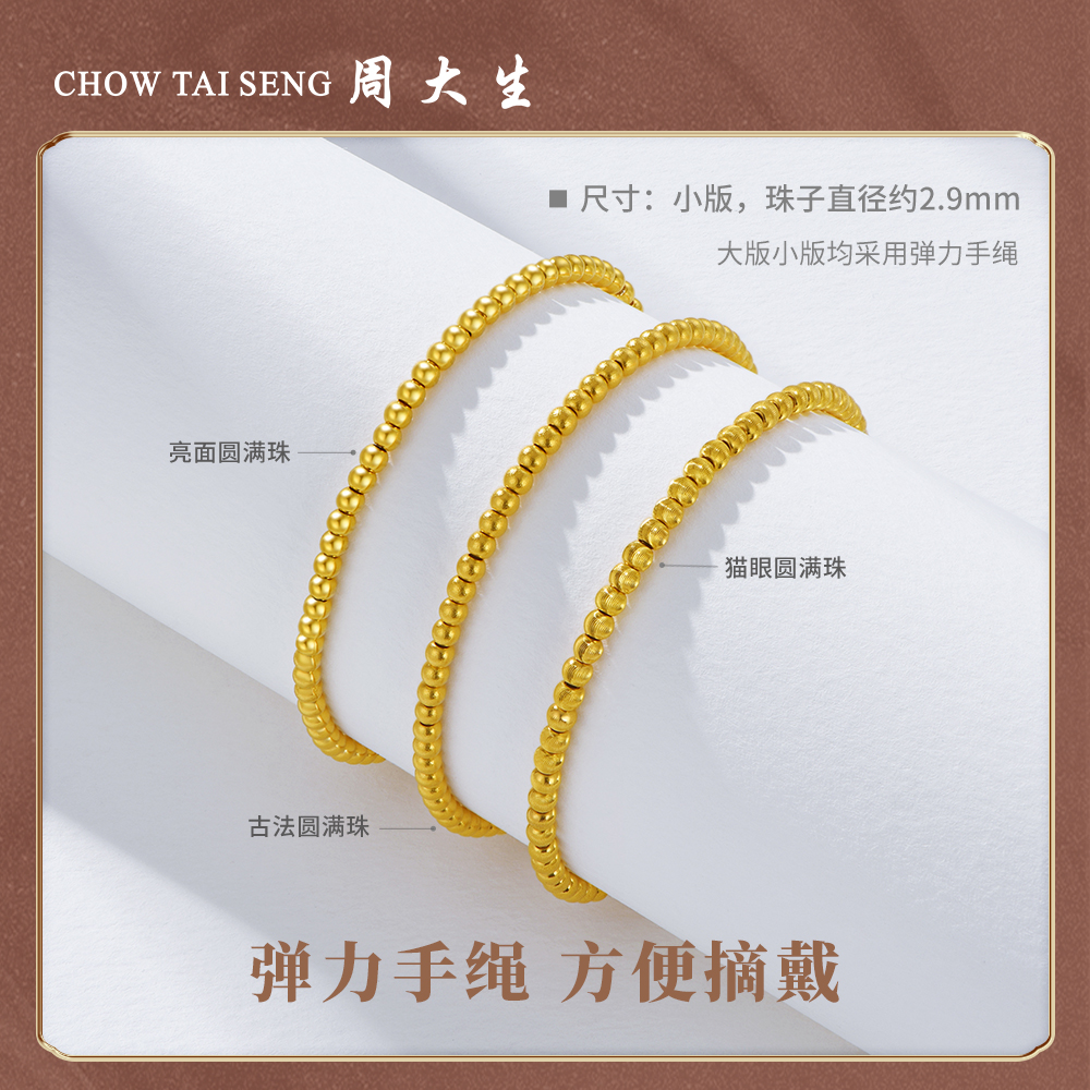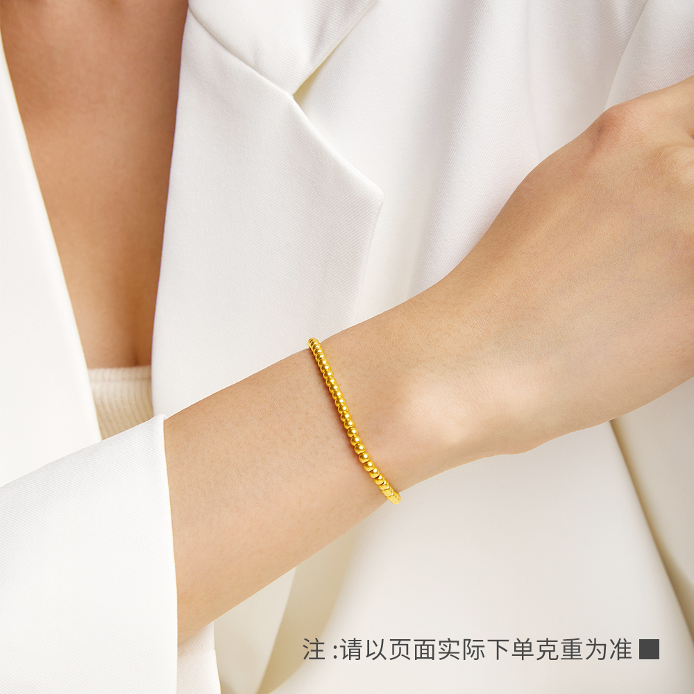 Zhou Dasheng Gold Sculpture Women's Foot Gold Ancient Method Cat's Eye Sand Gold Beads 5G Ball Beads Bracelet for Girlfriend Gift Jewelry