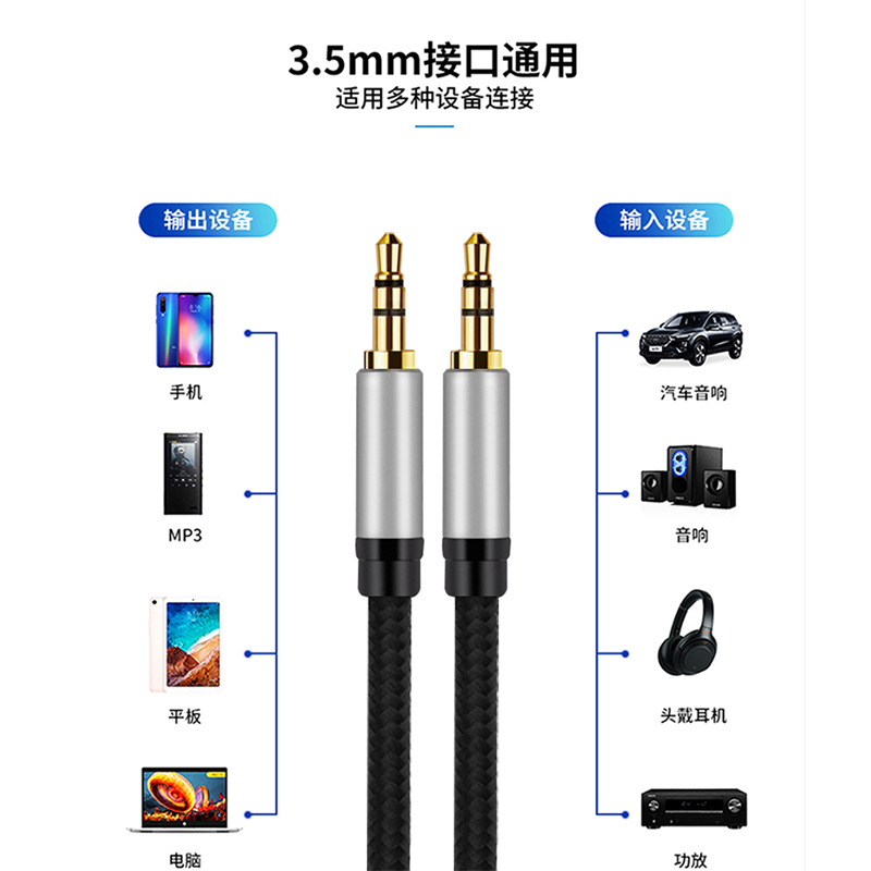 aux audio wire vehicle hair burning grade 3 5mm cell phone output switching wire silver-coated pair of recording wire car on-board aus computer speaker line double-head insertion connecting line for public sound ear machine