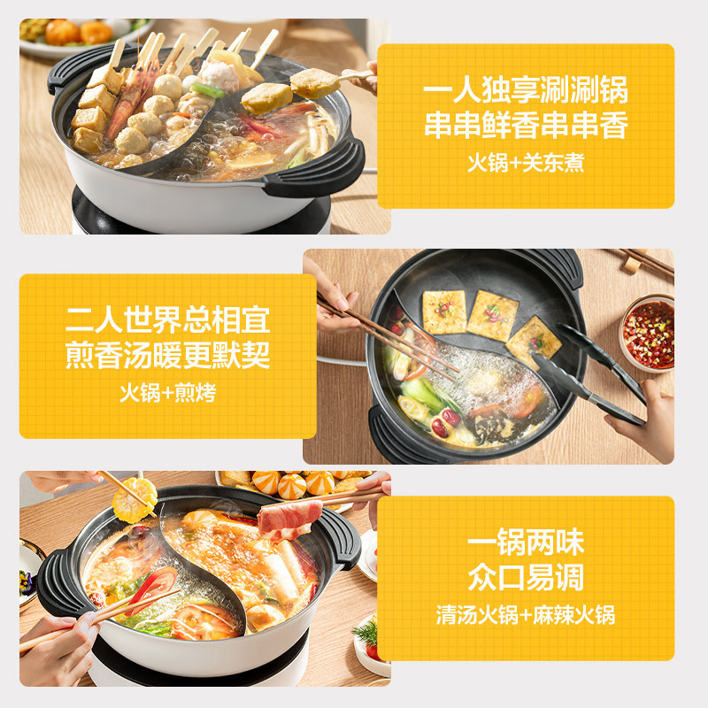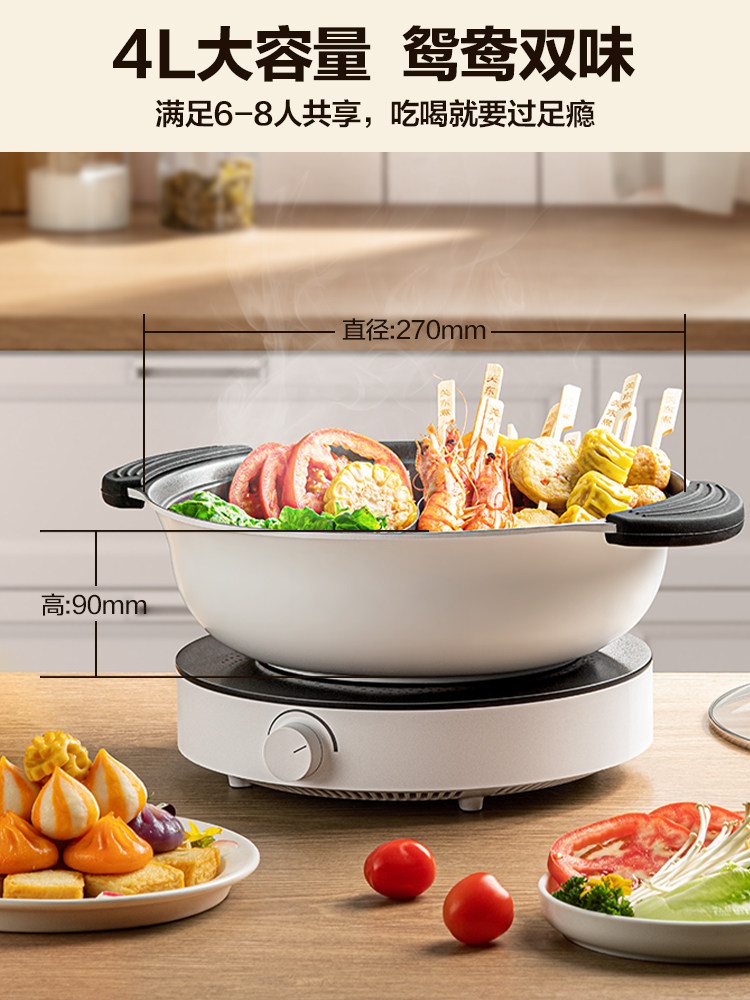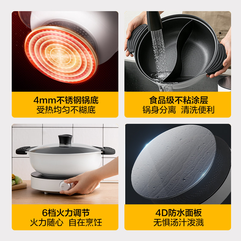 Midea induction cooker and hot pot all-in-one pot household high-power mandarin duck pot multi-function removable and washable two-piece electric cooker
