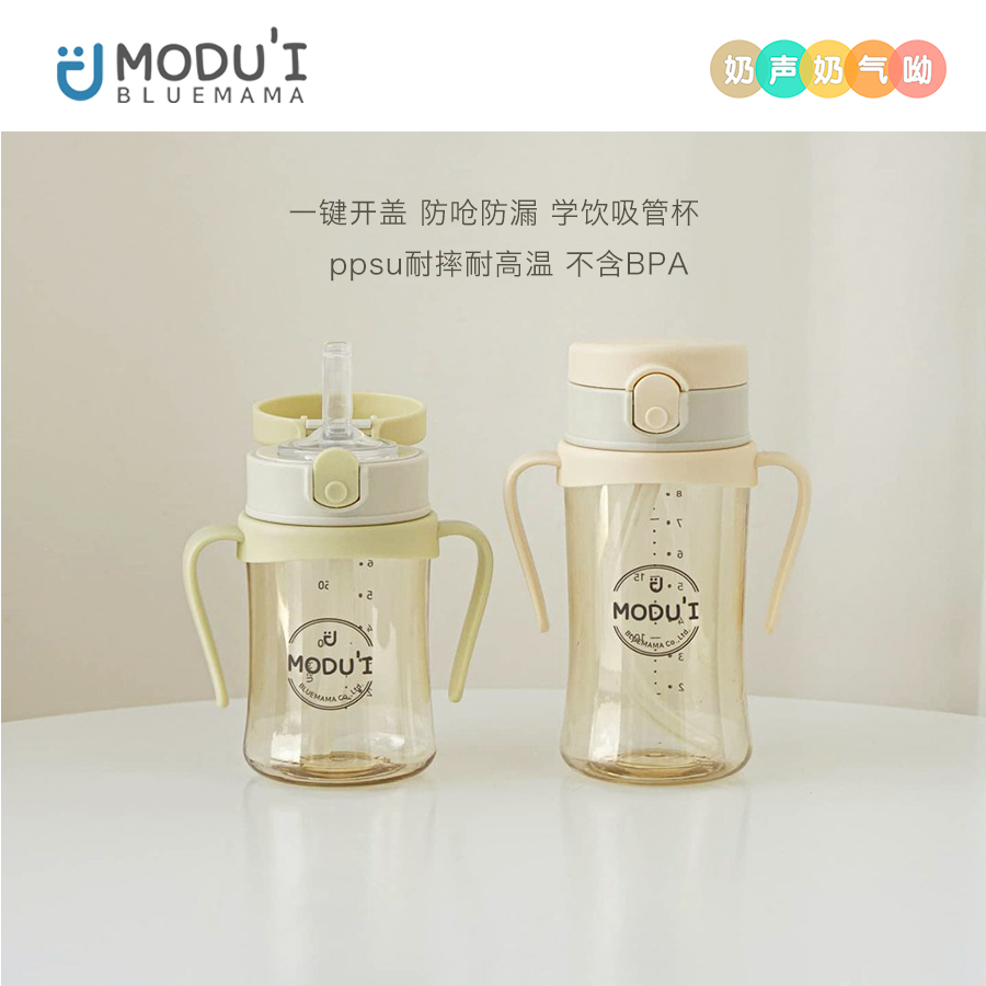 South Korea MODUI baby PPSU straw cup baby learn to drink cup anti-choking leak-proof gravity ball bottle drinking cup